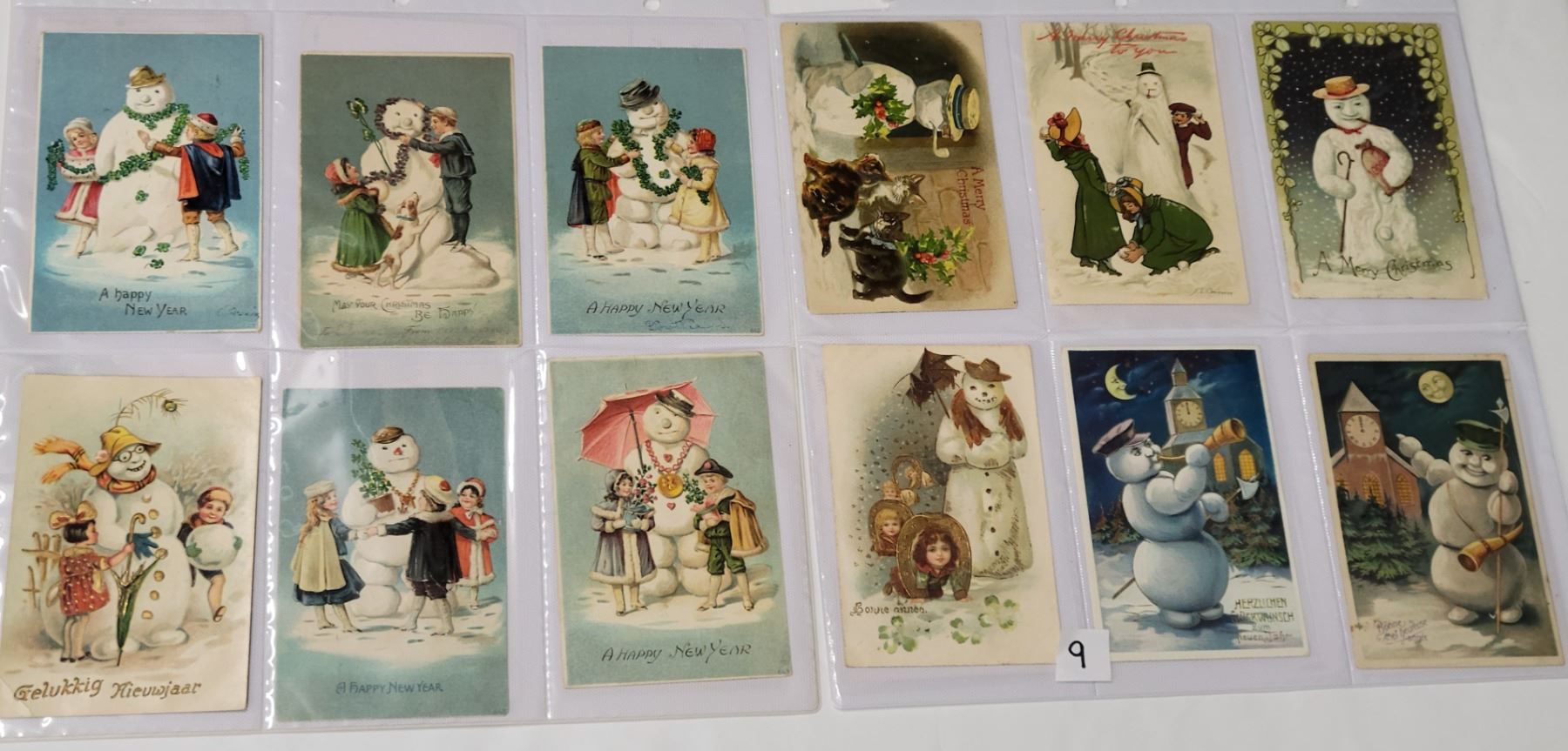Lot 9 Snowmen Holiday Greeting Album 65+ Postcards