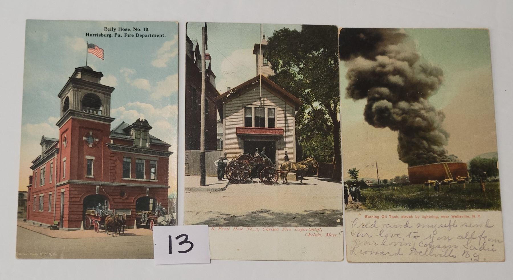 Over 60 fire postcards. Stations, fires, engines, etc. Early to linen.