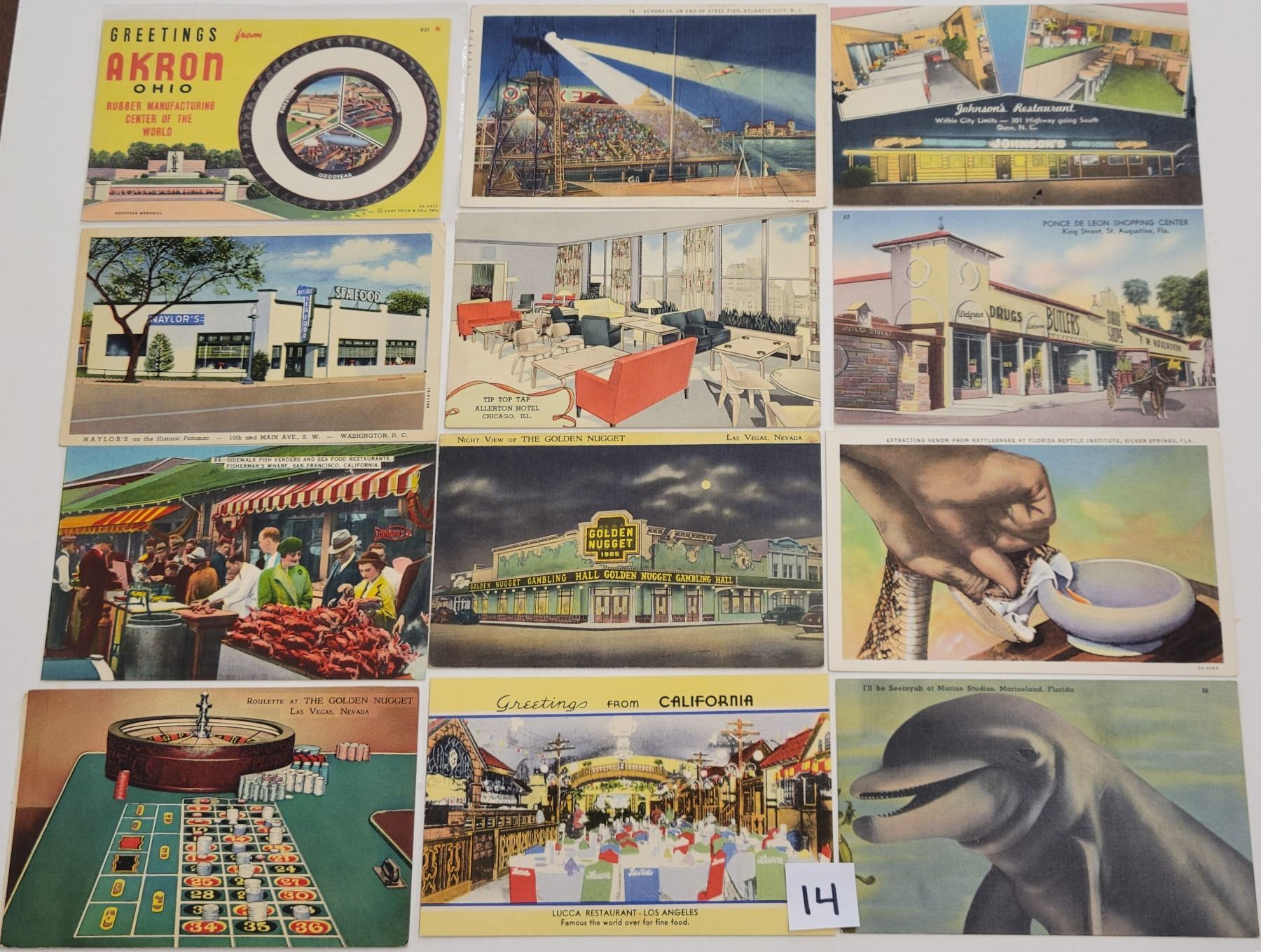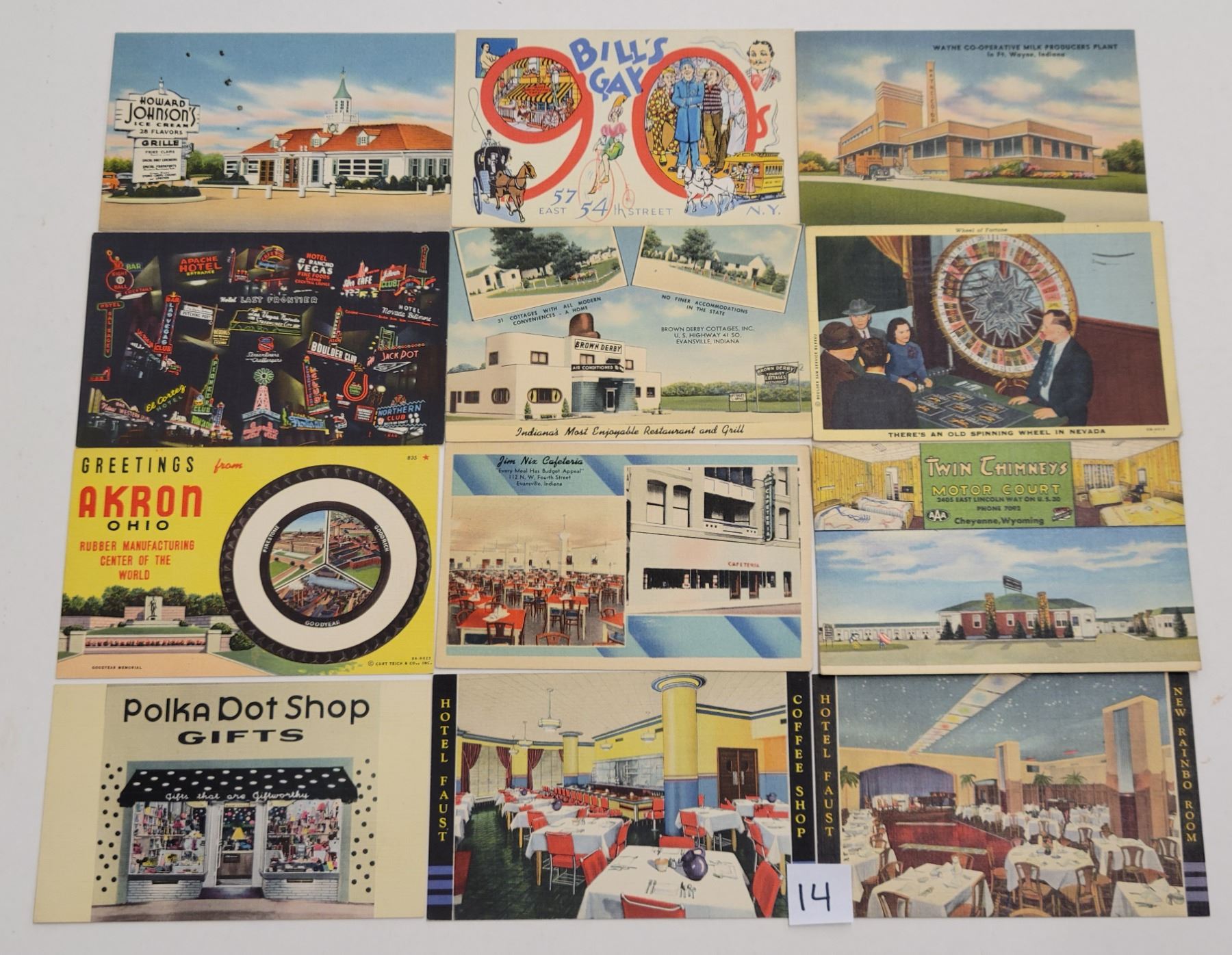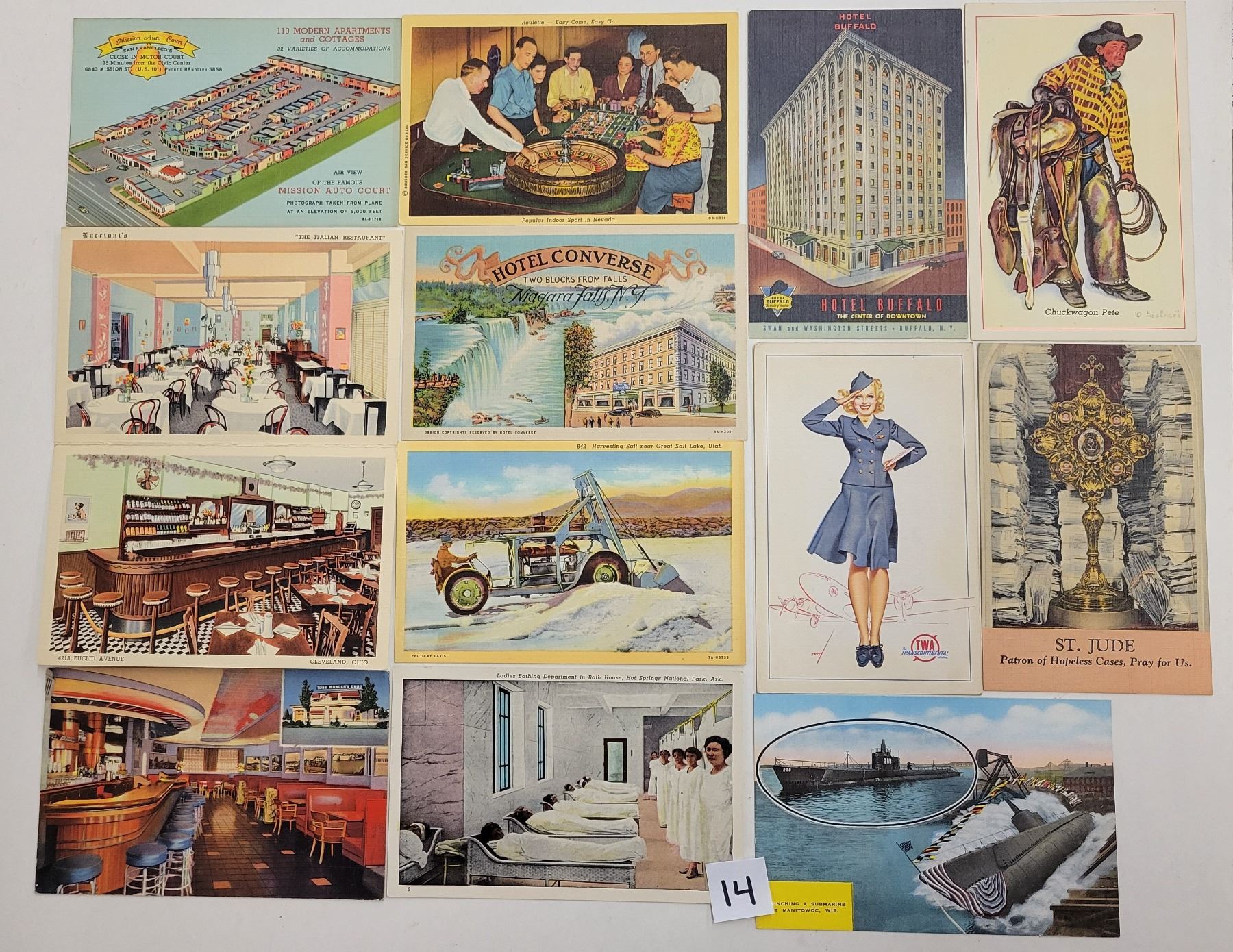 Approx. 130 linen postcards. Advertising, colorful, restaurants, interiors, etc.