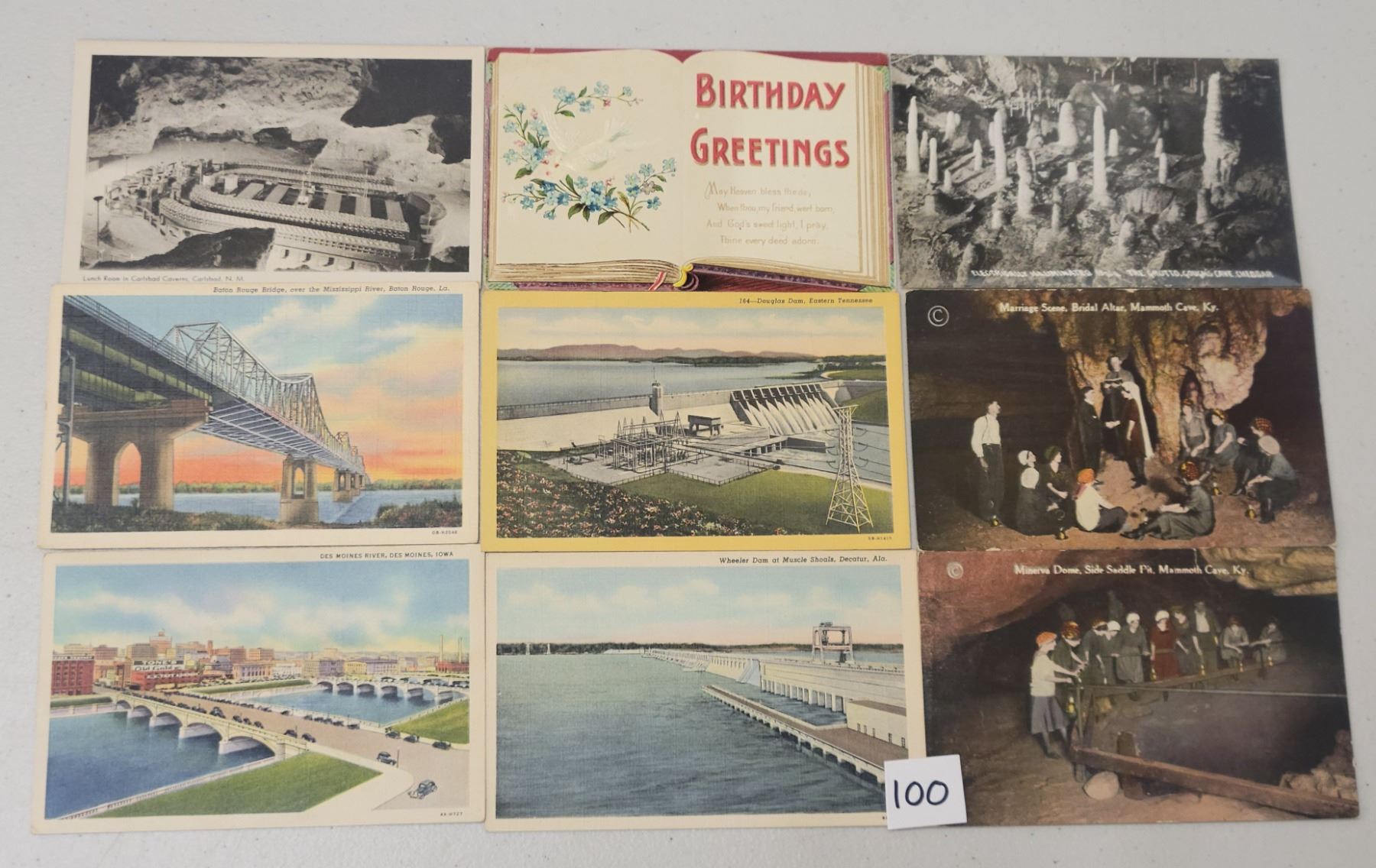 Approx. 550 postcards. Animals, art, bridges, caves, dams, forts, waterfalls and more.