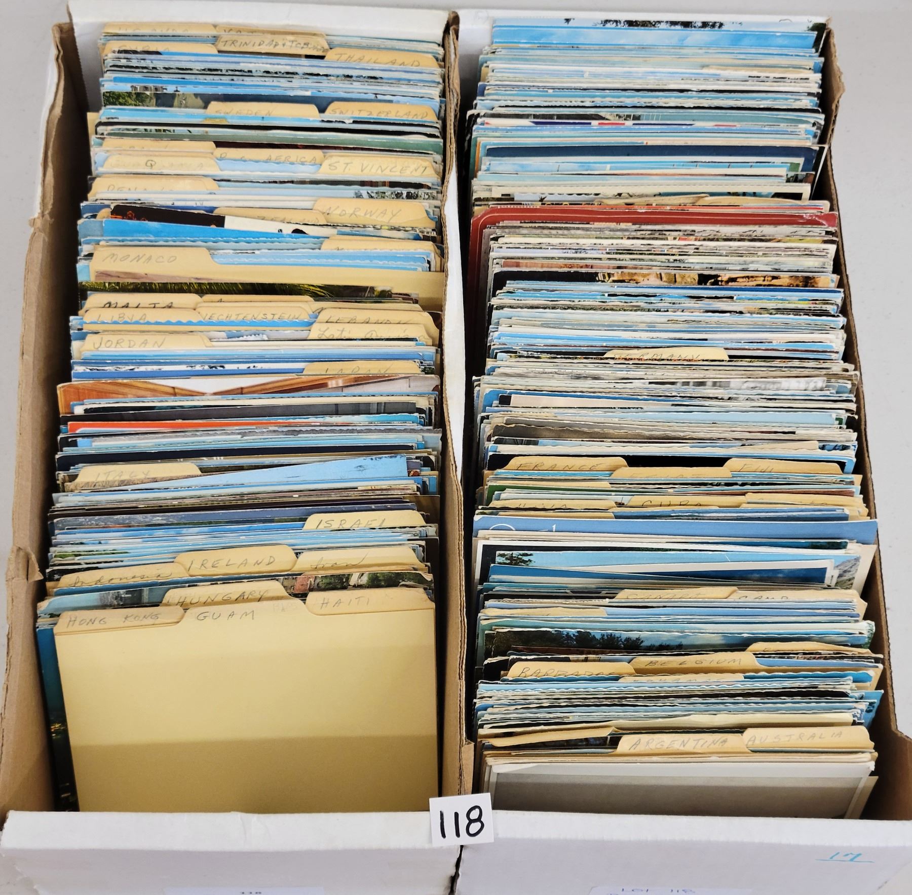 Lot 118 2 Boxes of Sorted International Postcards 1100+