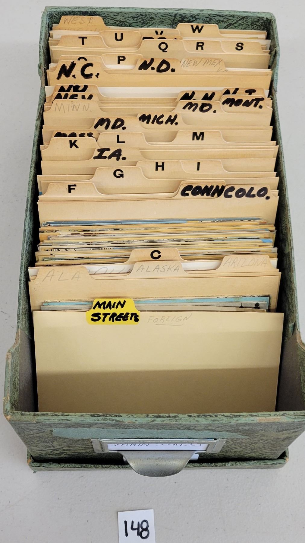 Approx. 485 street scene postcards. Sorted by state. Early to standard size chrome.