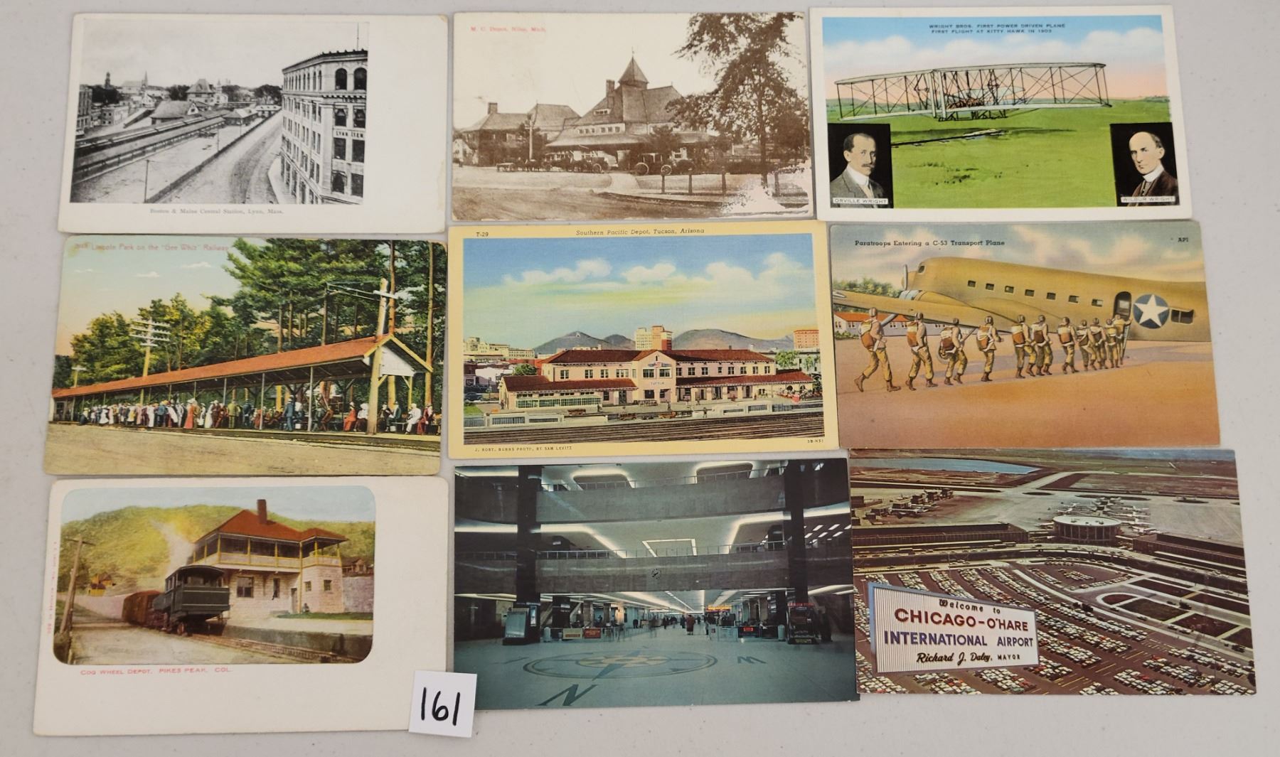 Approx. 470 transportation postcards. Early to standard size chrome. Some of the break downs are: automobile, aviation, buses, railroad, ships, depots and more.