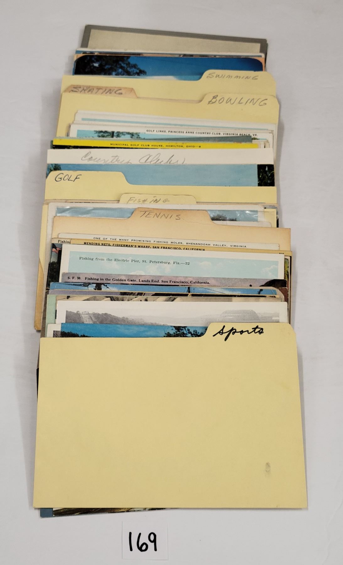 Approx. 150 sports postcards. Bowling, golf, tennis, skating, swimming and more. Early to standard size chrome.