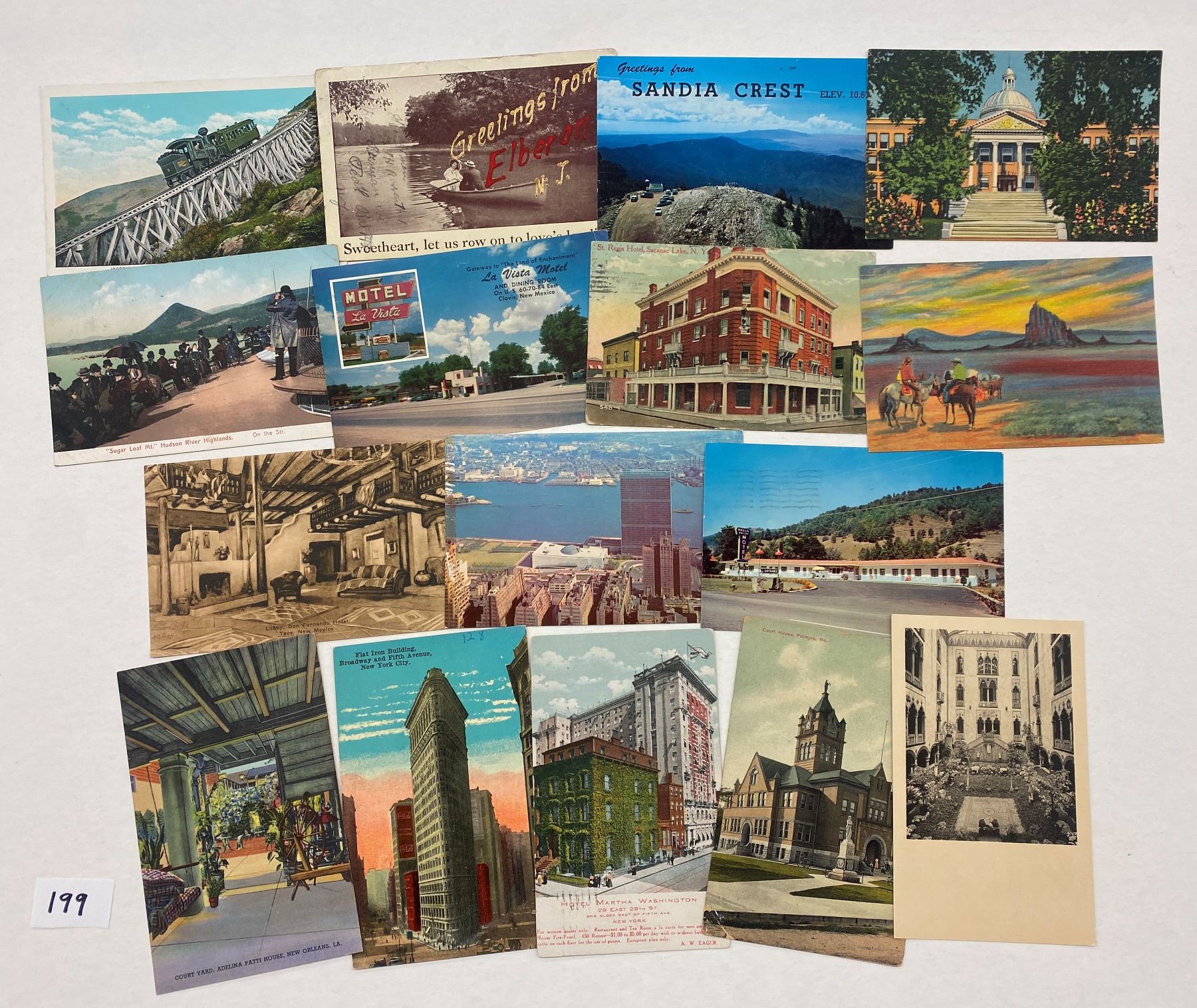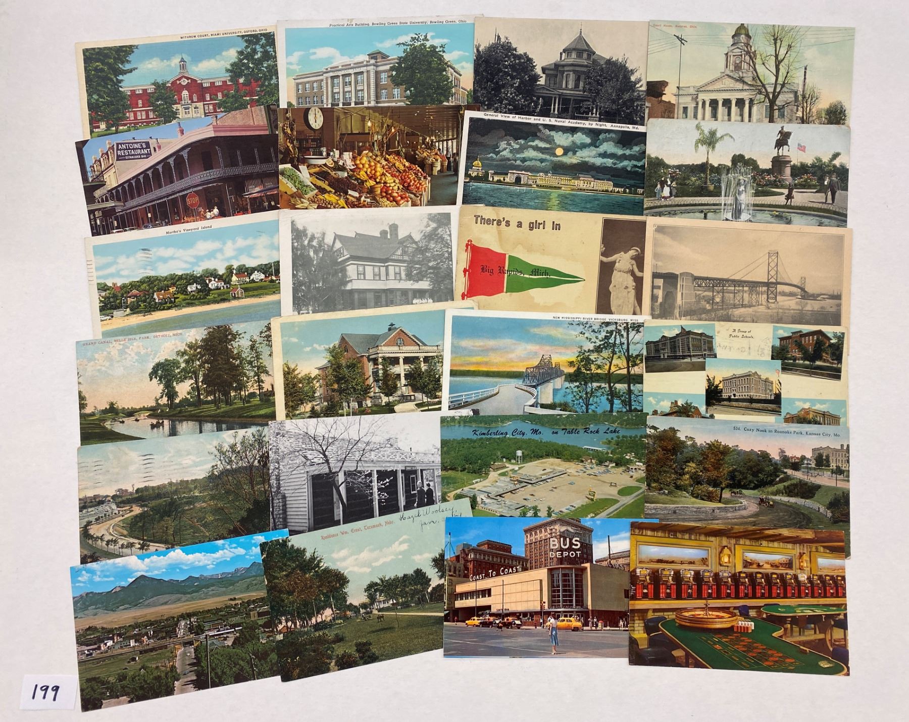 Approx. 275 postcards. States sorted: Louisiana to Ohio. Early to standard size chrome.
