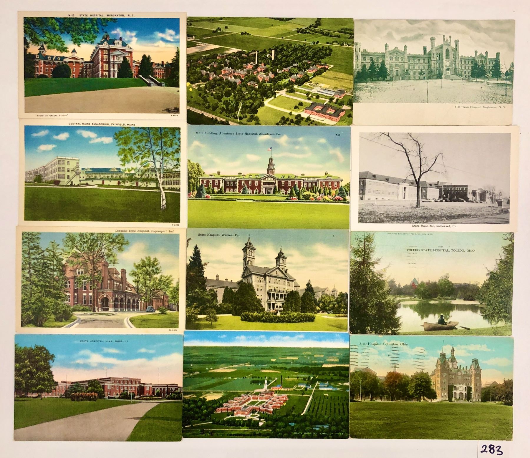 Lot 283 Insane Asylums - State Hospitals 20 Postcards