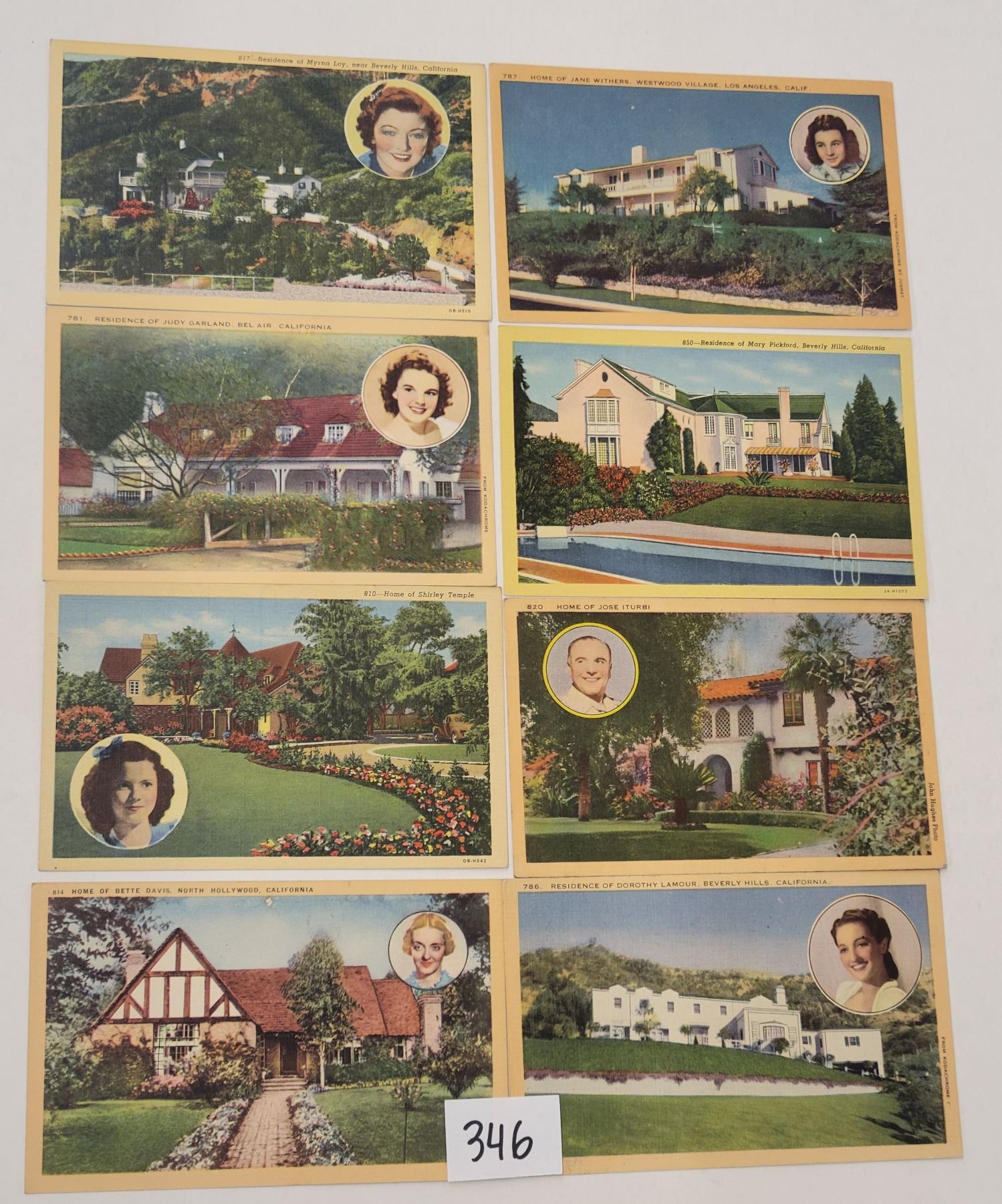 Lot 346 Movie Star Home Postcards Approx. 115
