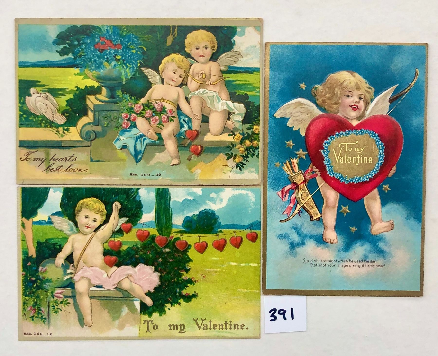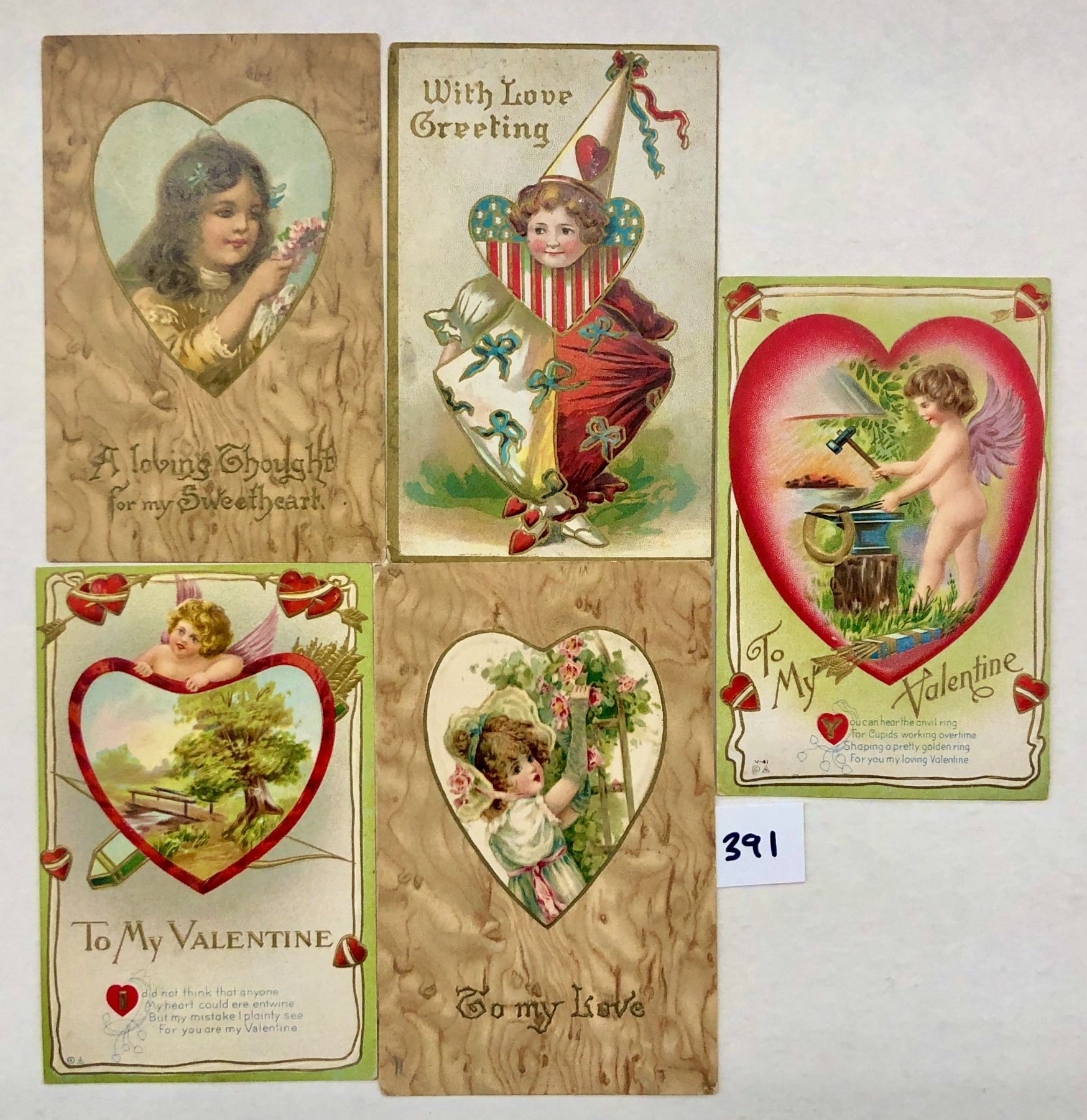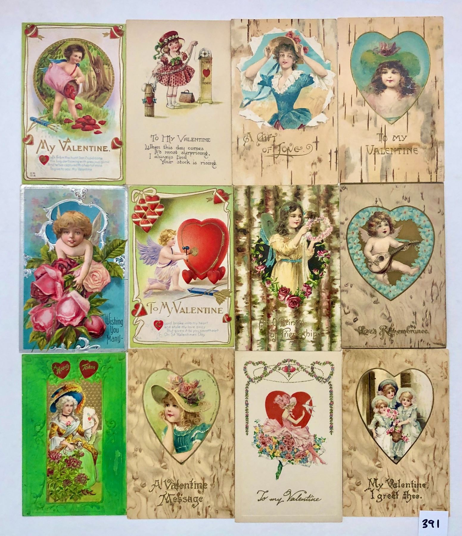 Over 40 Valentine postcards. Early. Cupid, children, lovers, etc.
