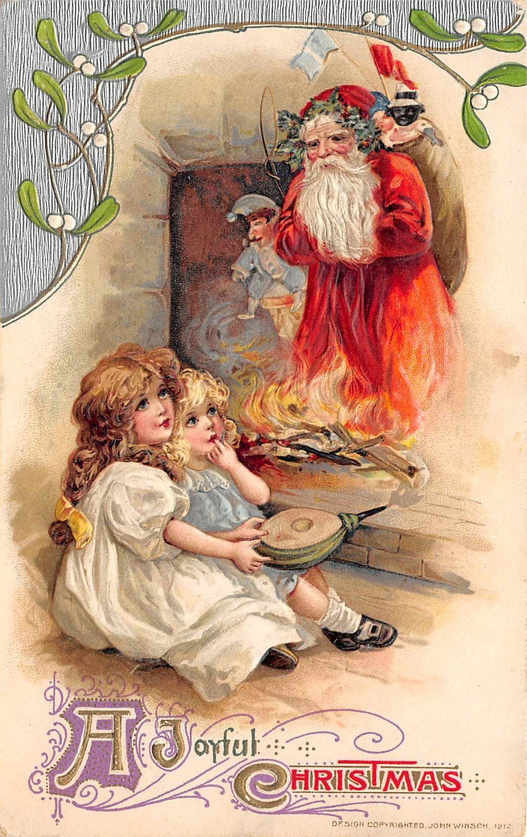 Lot 410 Pair of Winsch Christmas Santa Claus Holiday Greeting Postcards