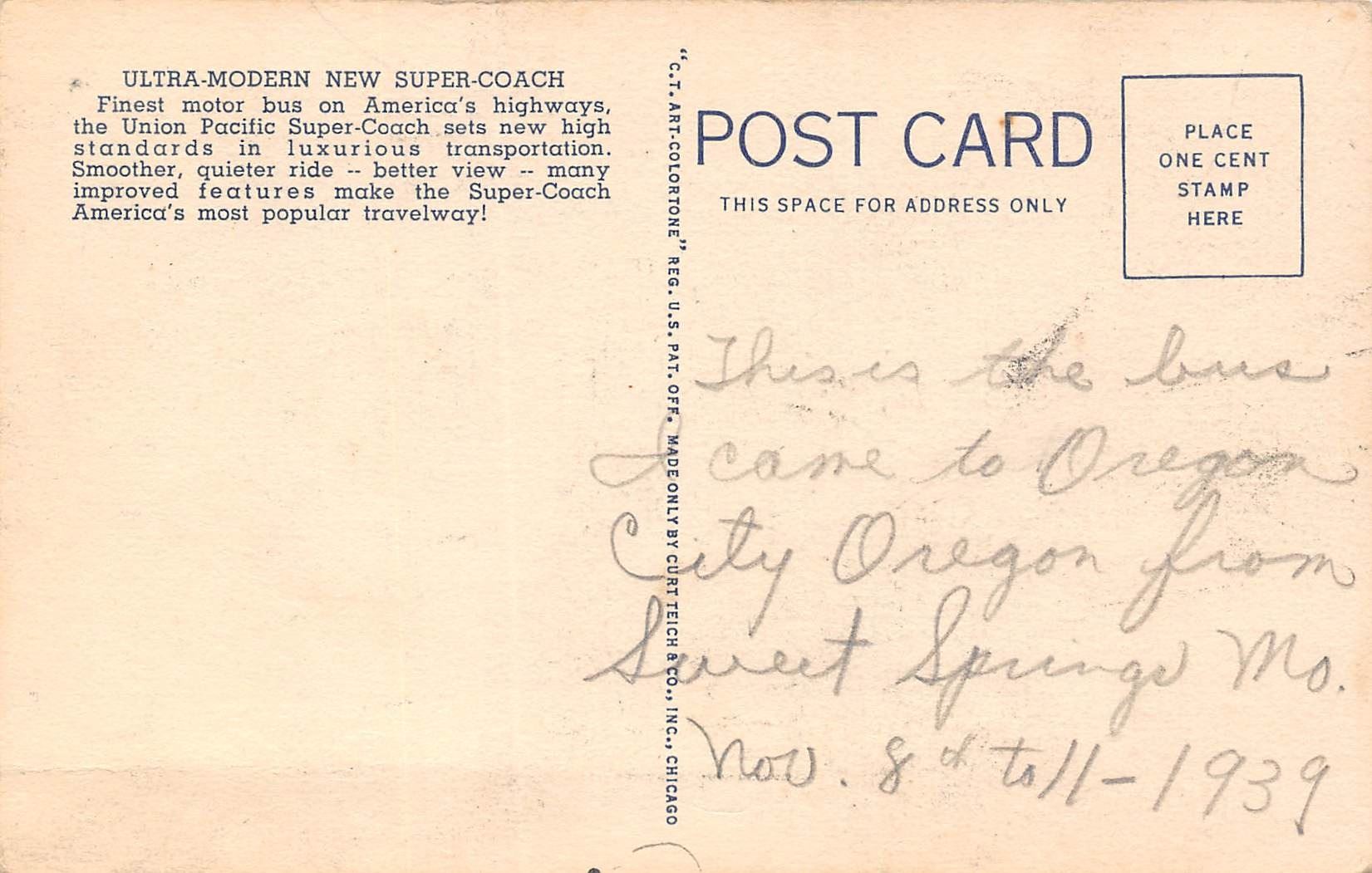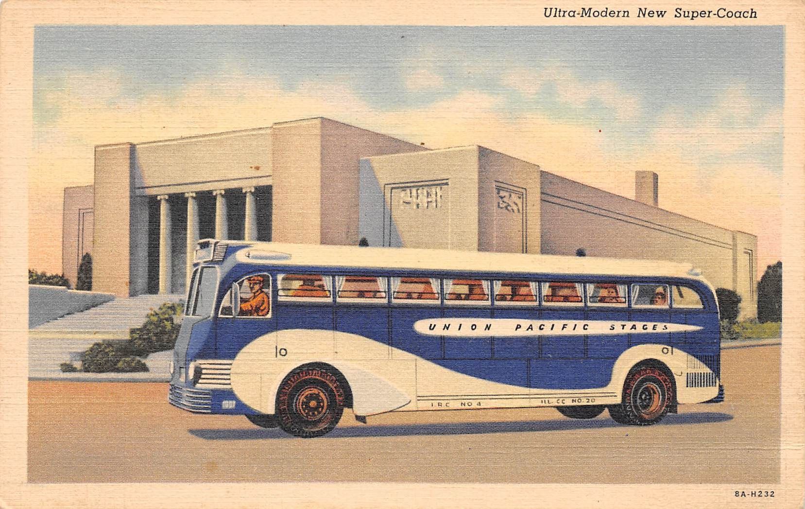 Lot 414 Linen Advertising Union Pacific Stages Bus Postcard