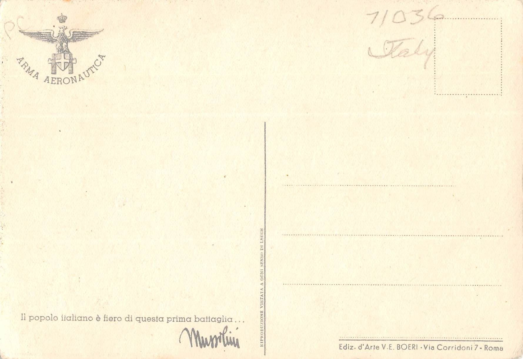 Lot 419 Italian Military Plane Signed Artist Postcard