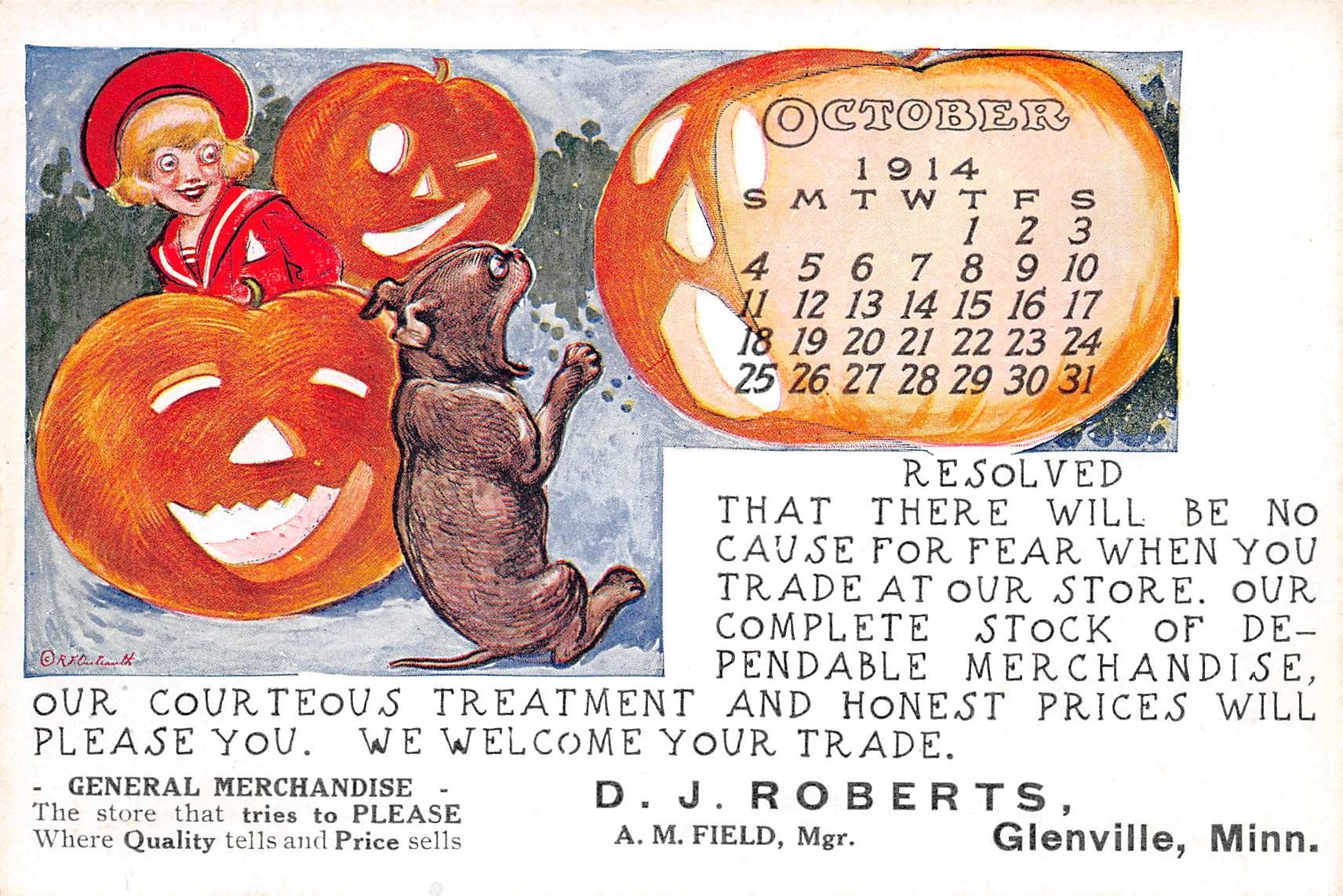 Lot 421 Halloween October 1914 Buster Brown Calander Advertising PC