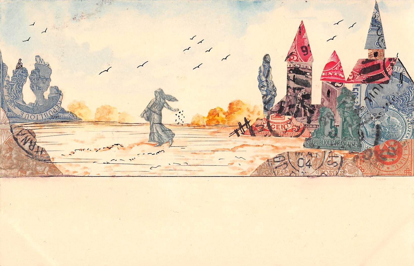 Lot 425 2 Novelty Stamp Montage Postcards