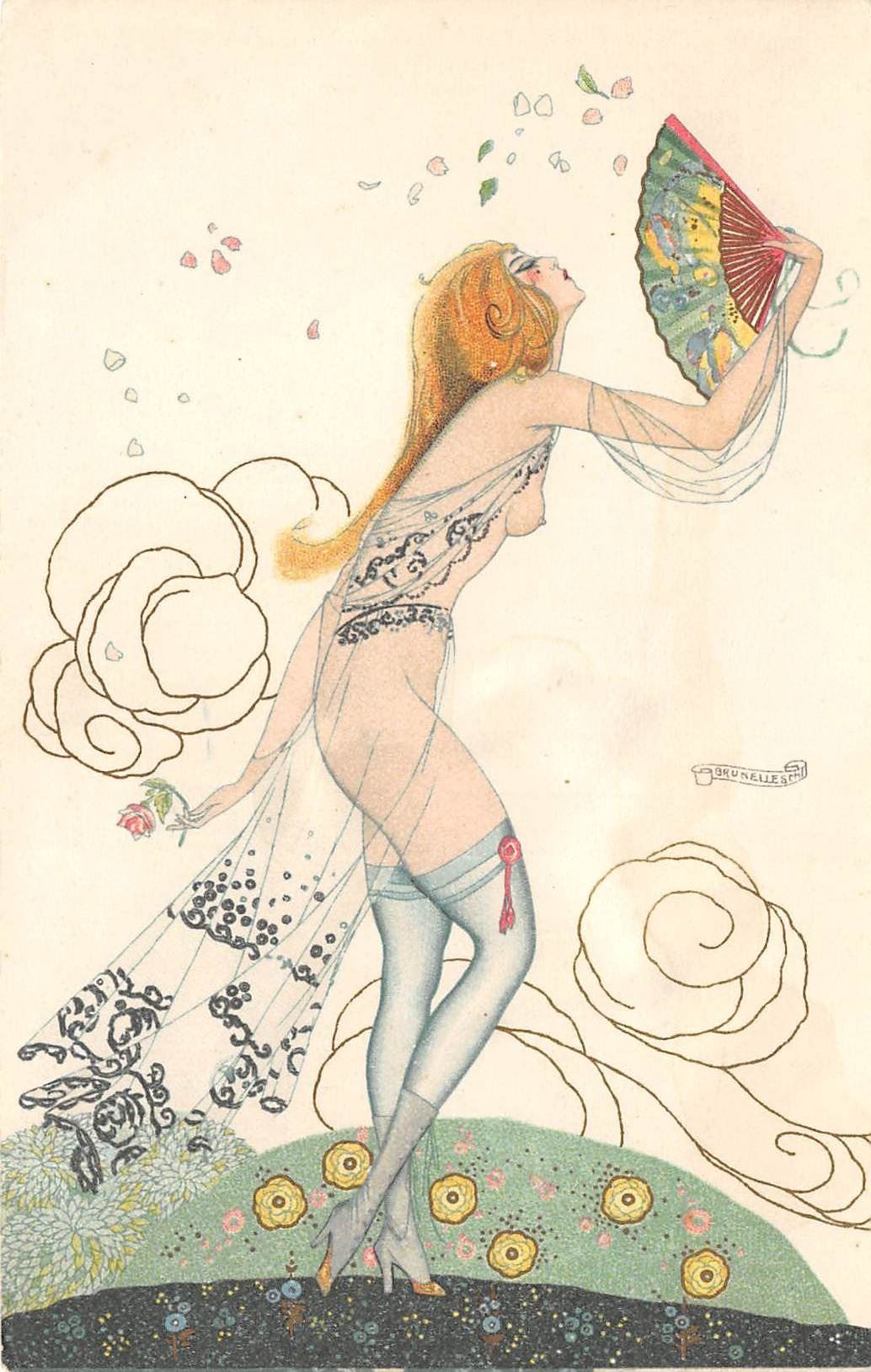 Lot 445 Art Nouveau Brunelleschi Nude Lady Postcard