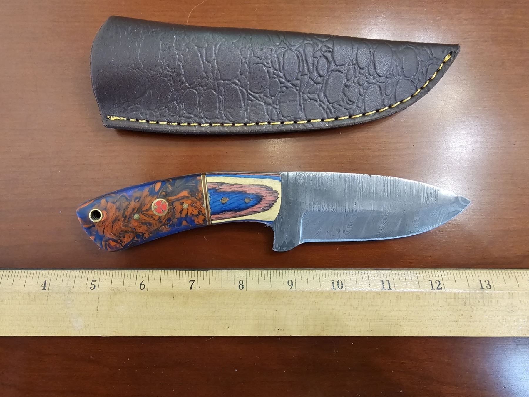 Hand Forged Damascus Steel Knife w/ Leather Sheath