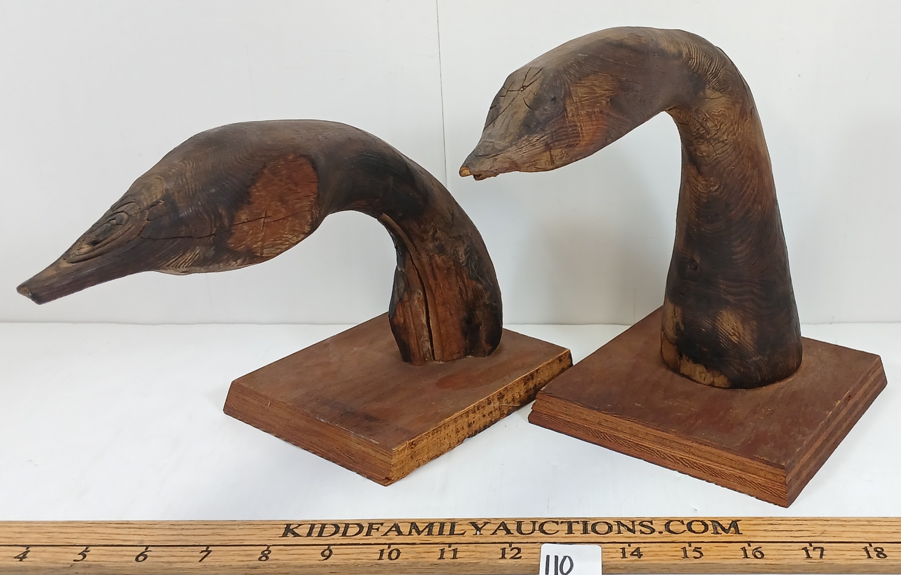 Lot 110 PAIR OF HAND-CARVED GOOSE BOOKENDS - 20TH CENTURY