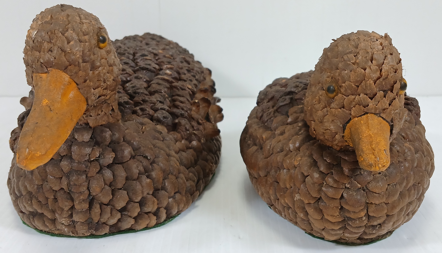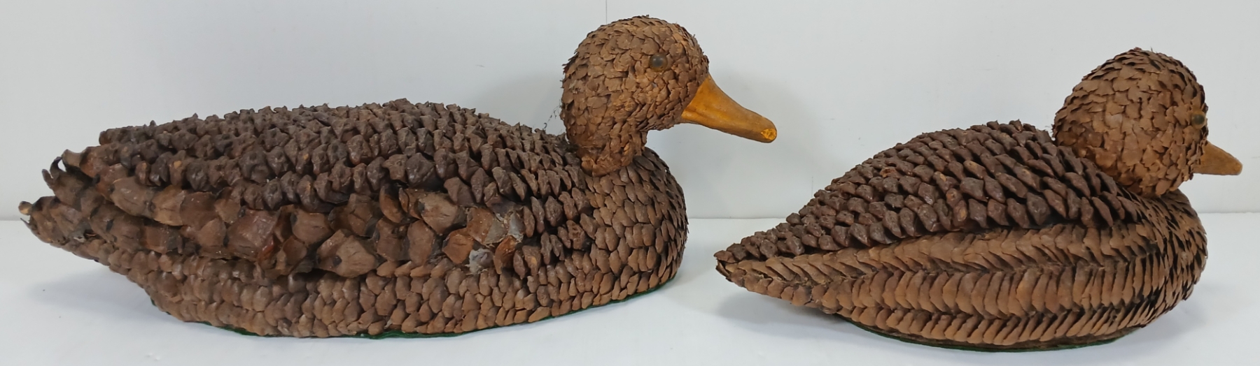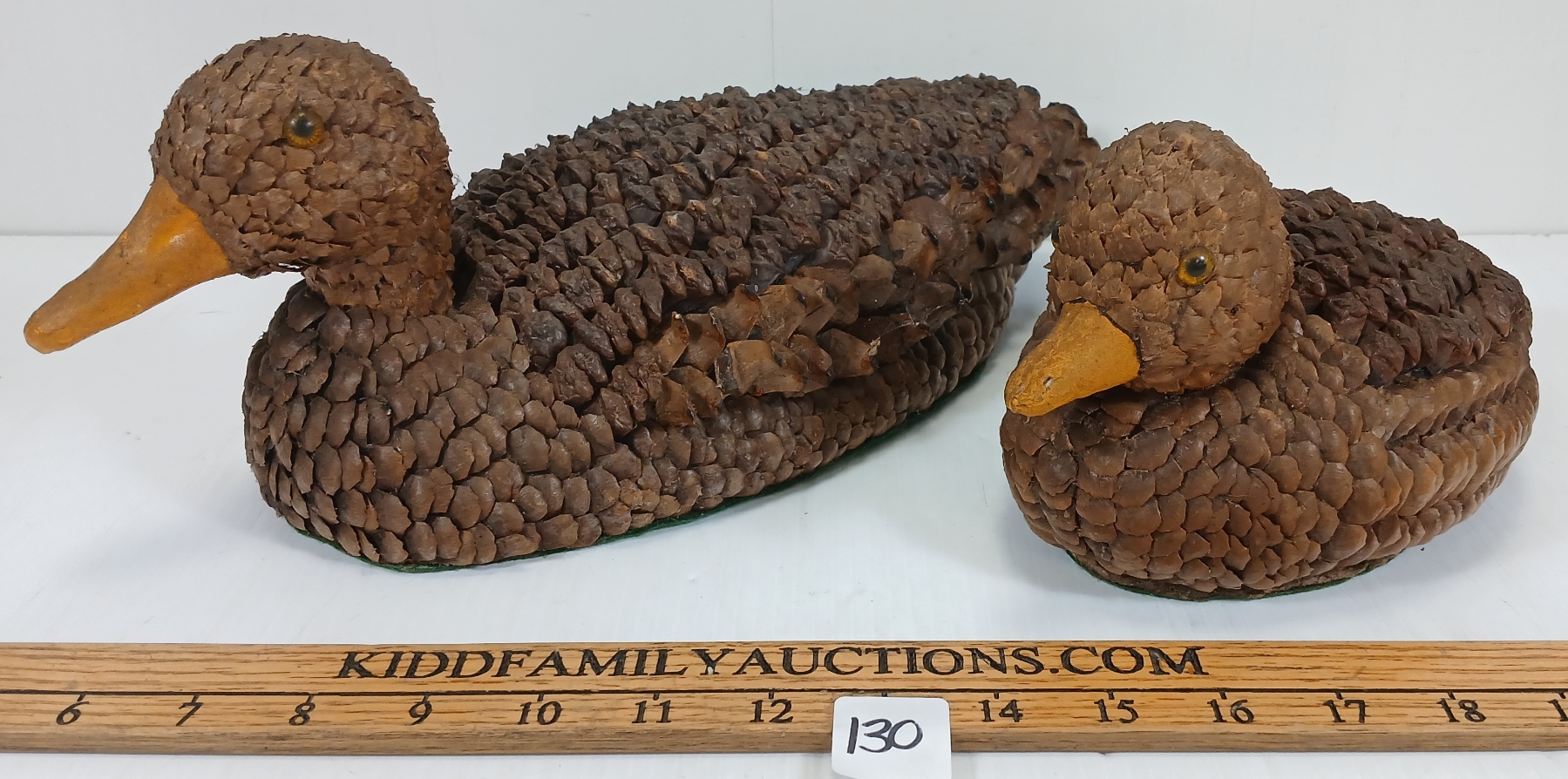 Lot 130 LOT OF 2 - PINE CONE DECOY DUCKS BY H.W.S. - C. 1960'S-1980'S