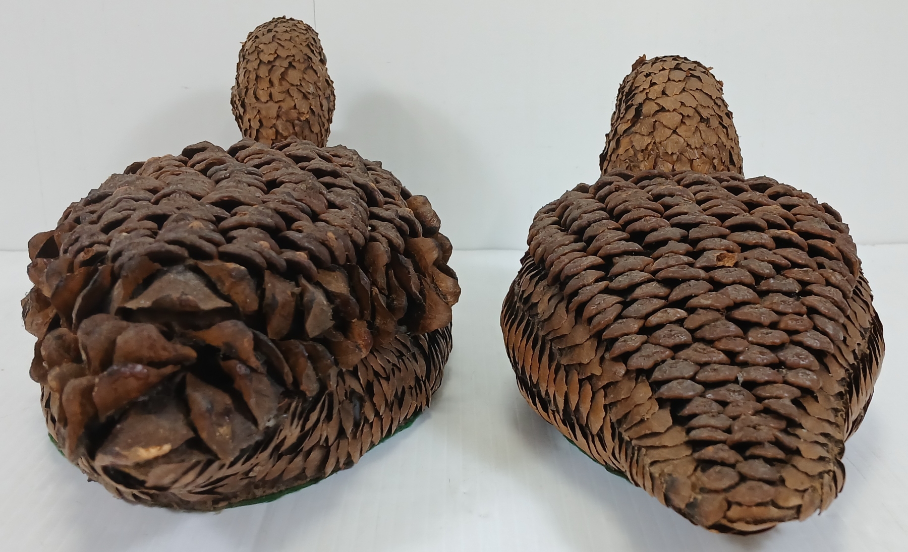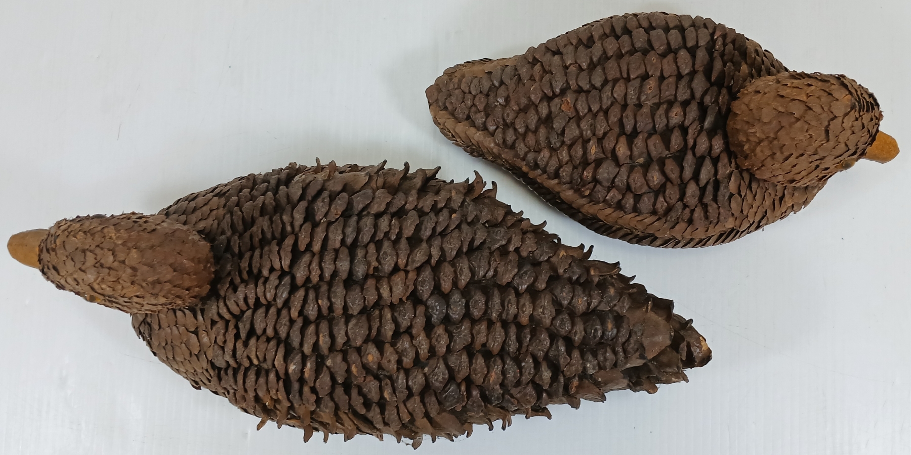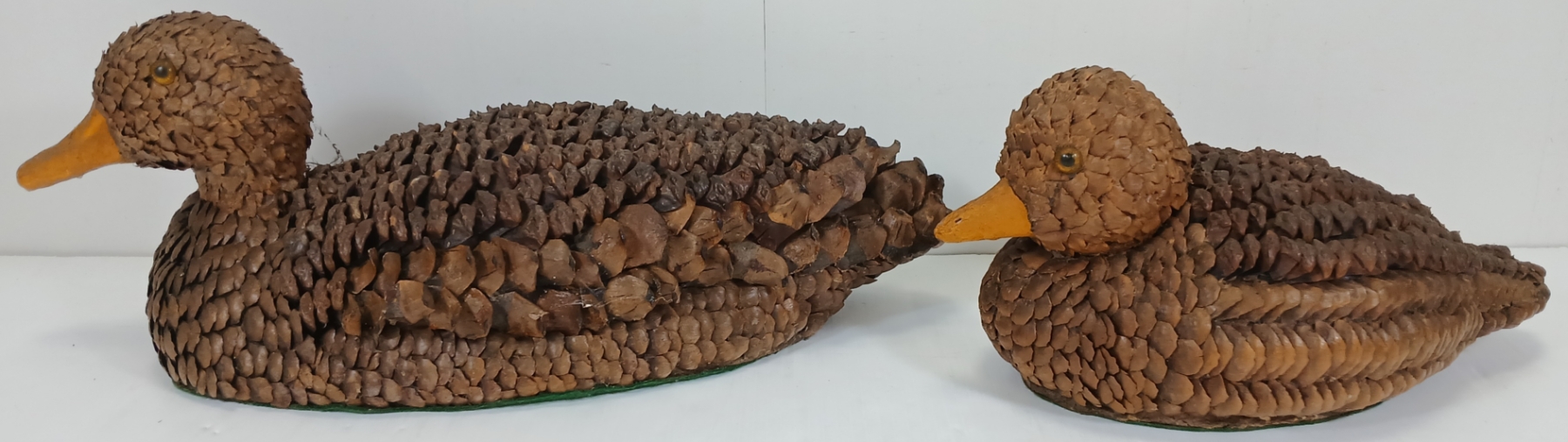 Lot 130 LOT OF 2 - PINE CONE DECOY DUCKS BY H.W.S. - C. 1960'S-1980'S