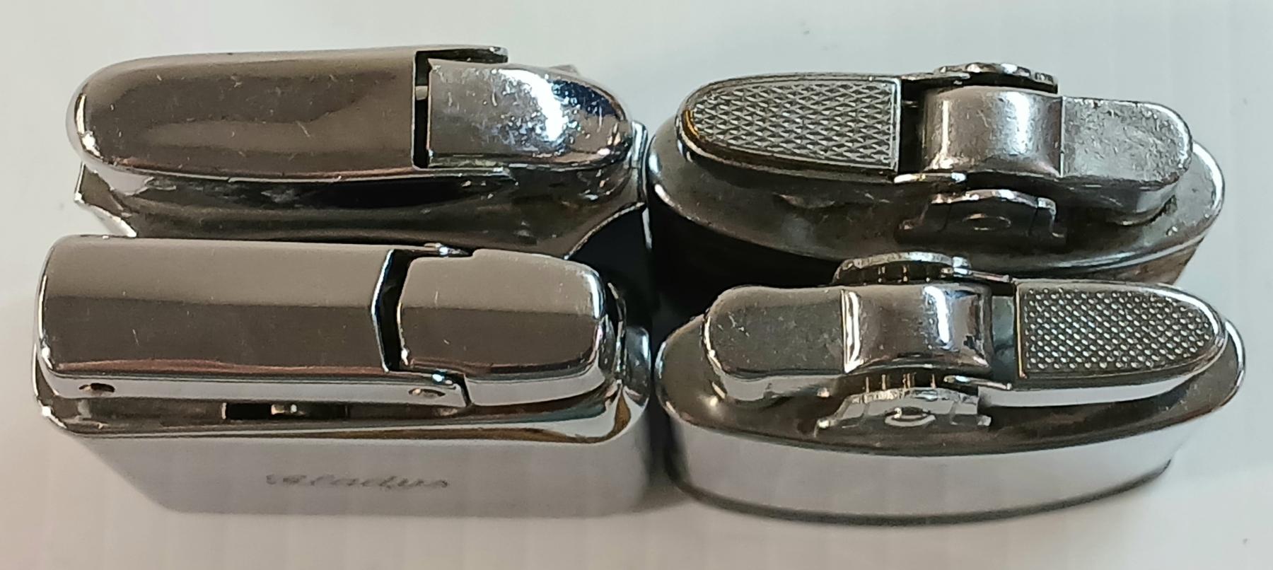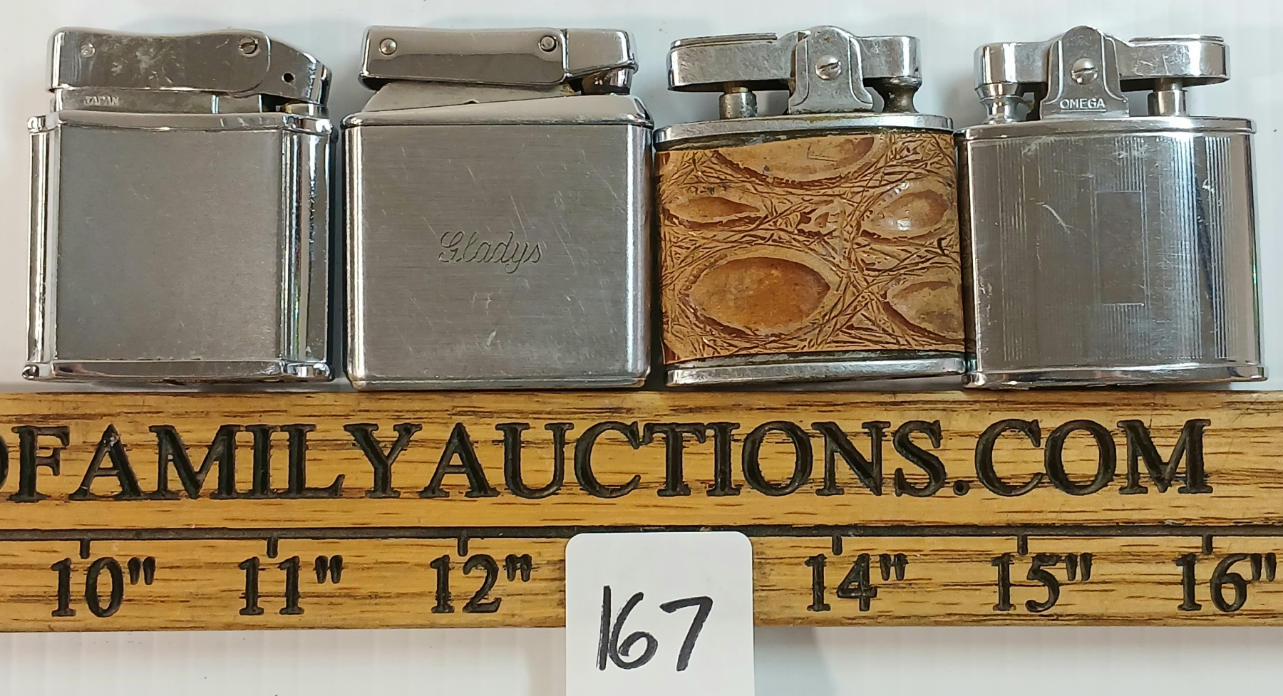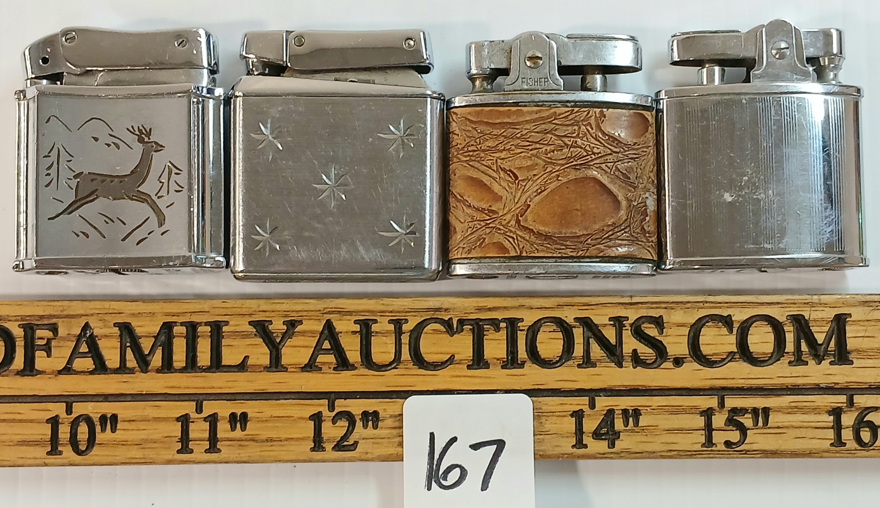 Lot 167 LOT OF 4 - FISHER, OMEGA & KREISLER LIGHTERS - LEATHER WRAPPED & ENGRAVED - C. 1950'S - 1960'S