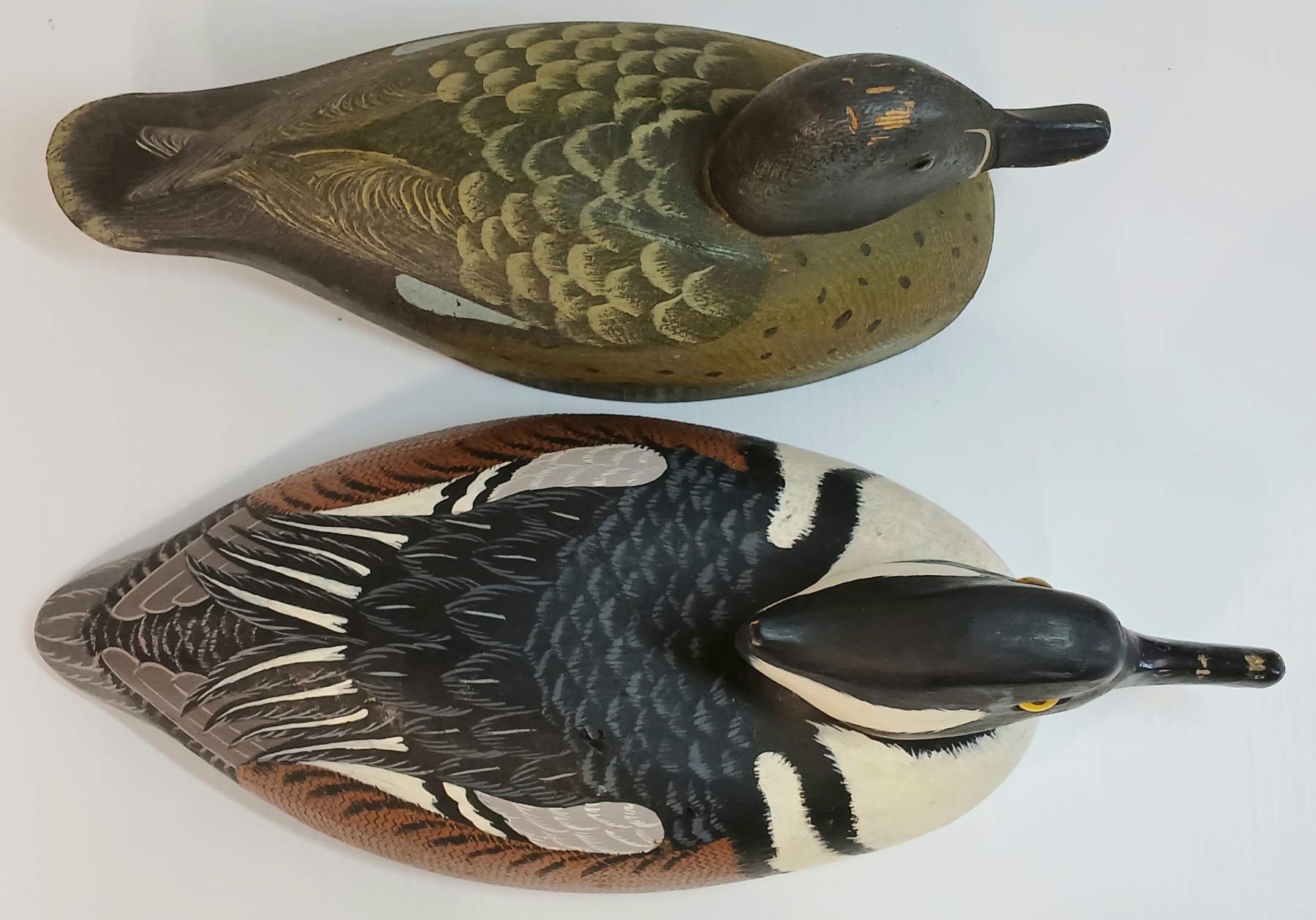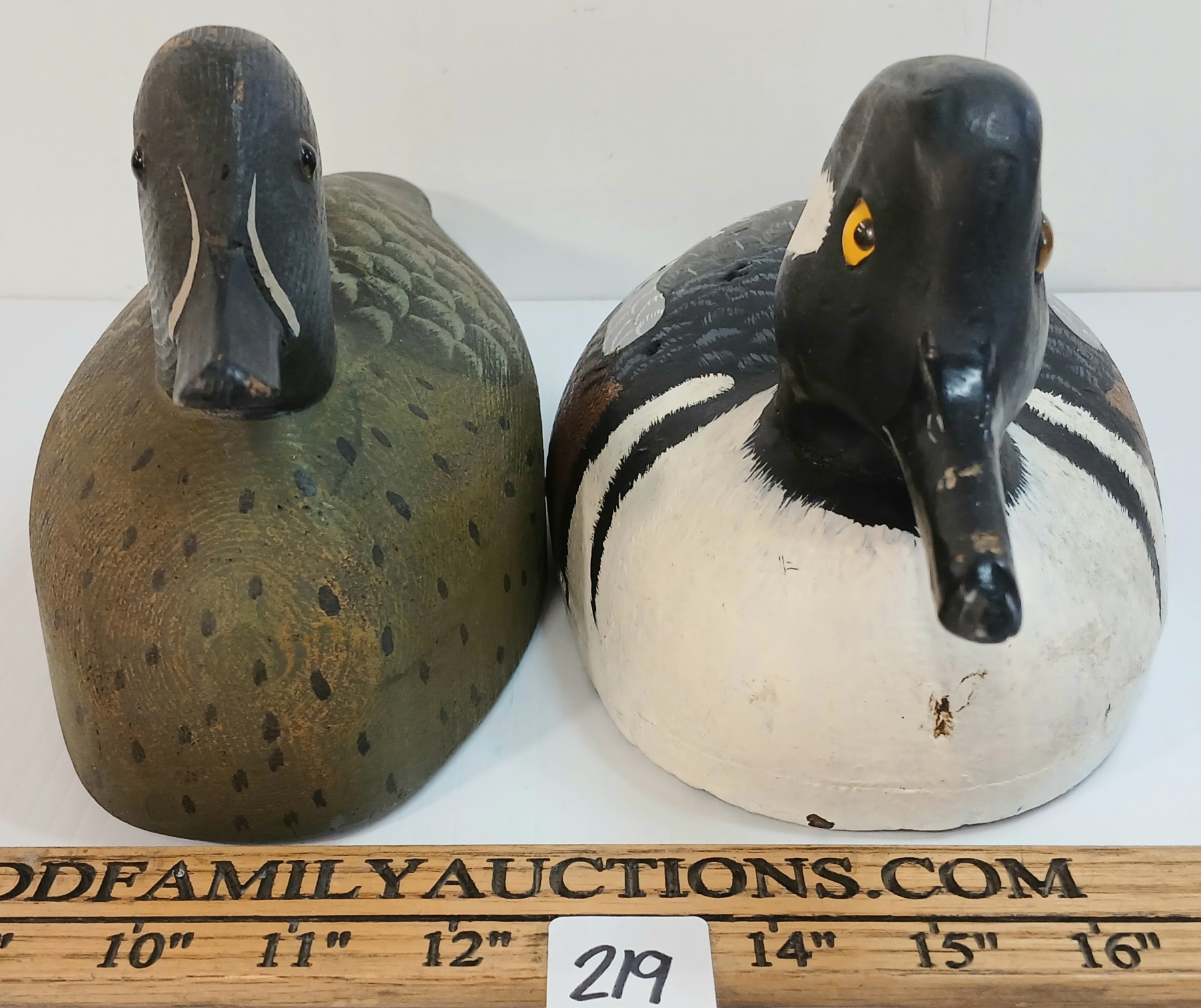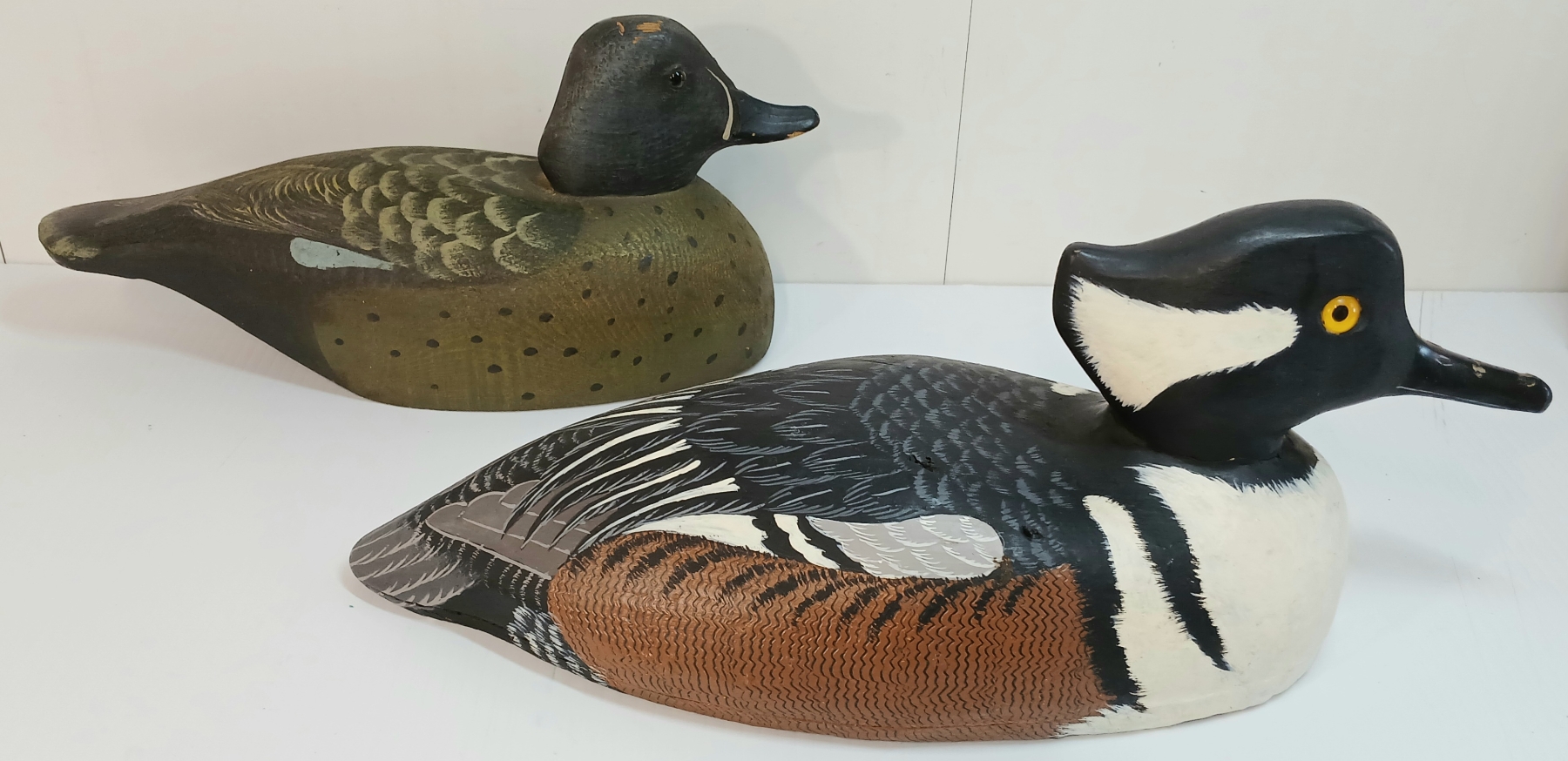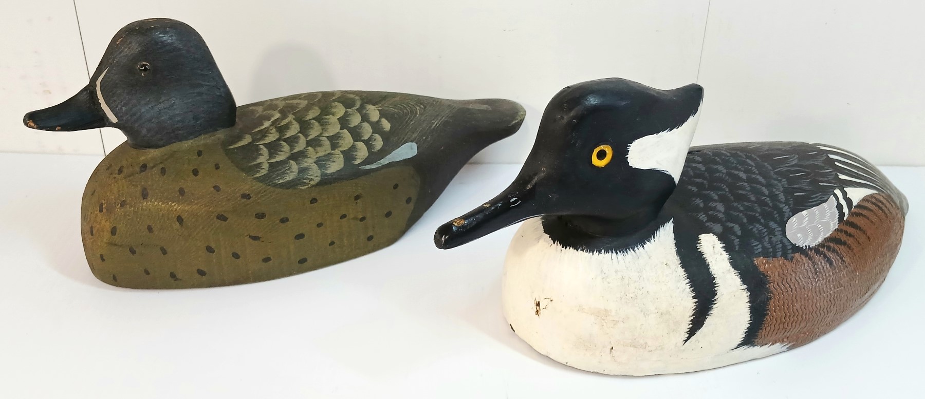 Lot 219 LOT OF 2 - HOODED MERGANSERS DECOY DUCKS - CIRCA 1980-2000's