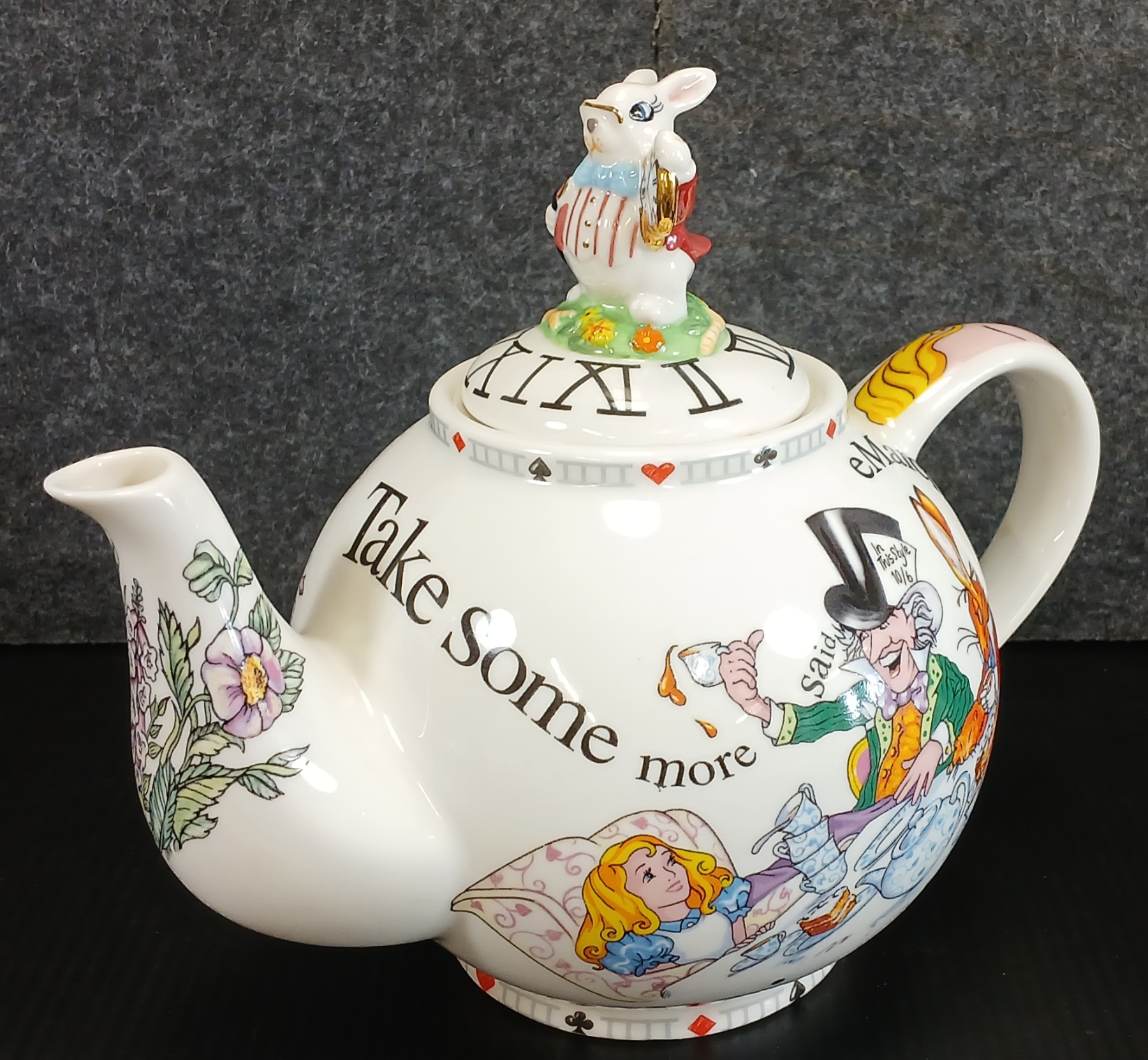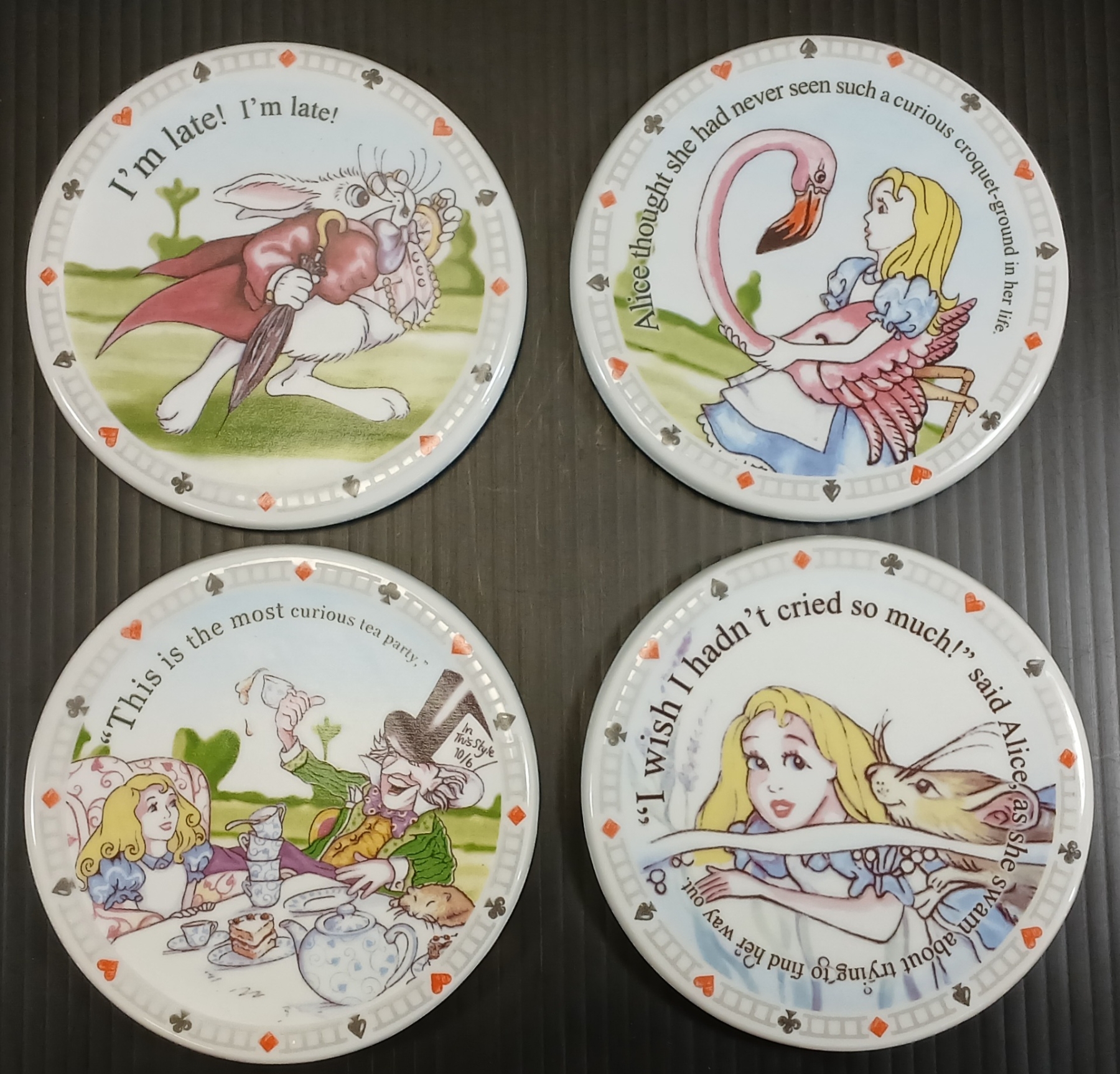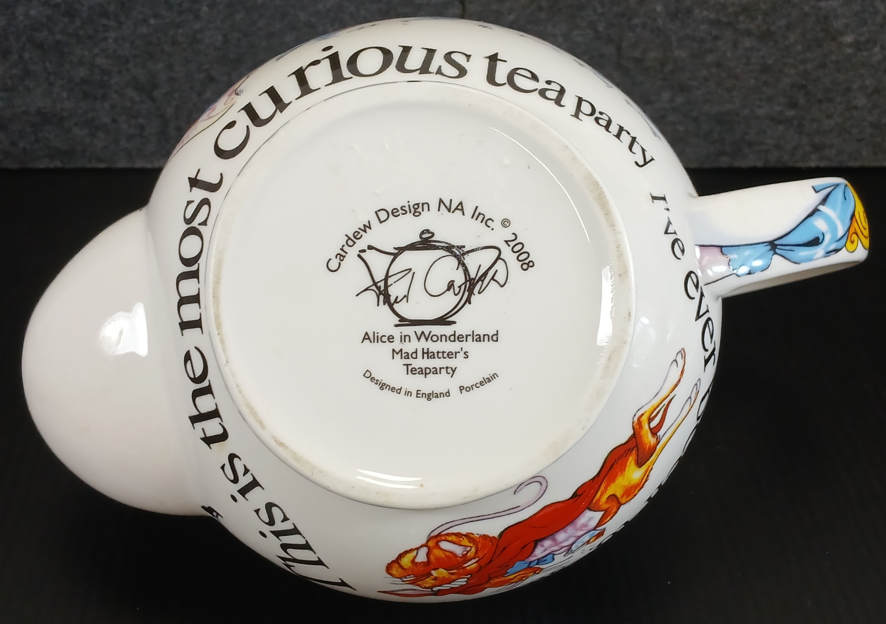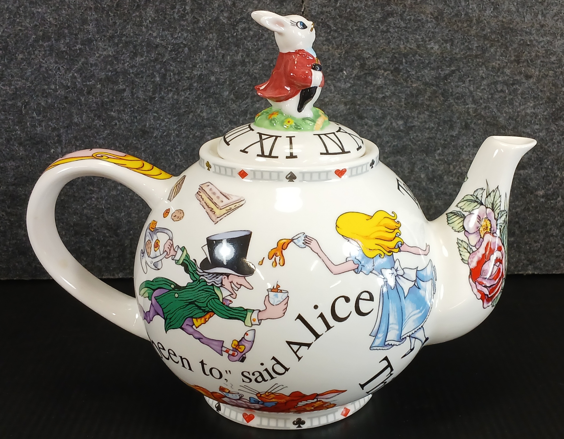 Lot 221 LOT OF 5 - ALICE IN WONDERLAND PORCELAIN TEAPOT, CREAM PITCHER, SUGAR BOWL, TRAY & COASTERS