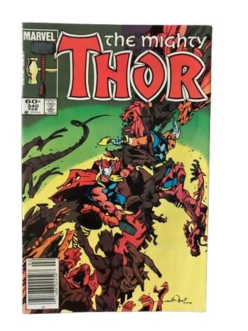 "Thor" #340, released in 1984, is a highly significant issue in Walt Simonson's legendary run on the "Mighty Thor" series. This particular comic is celebrated for its crucial developments in the Beta Ray Bill storyline. Within its pages, readers witness the culmination of the conflict with the demonic forces threatening Beta Ray Bill's people, showcasing the powerful alliance between Thor and Bill. Beyond the action, the issue delves deeply into the characters, particularly Beta Ray Bill, exploring his sense of isolation and his struggle to find belonging. Notably, Odin plays a pivotal role, bestowing a transformative gift upon Bill, which has lasting ramifications. The issue also weaves in subplots involving other Asgardian characters, adding depth to the overall narrative. Walt Simonson's distinctive art style, combined with his compelling storytelling, makes "Thor" #340 a standout comic, remembered for its emotional weight and lasting impact on the Thor mythos. Condition: Very Good. Top Cover is creased at the spine. Not even with the back cover.