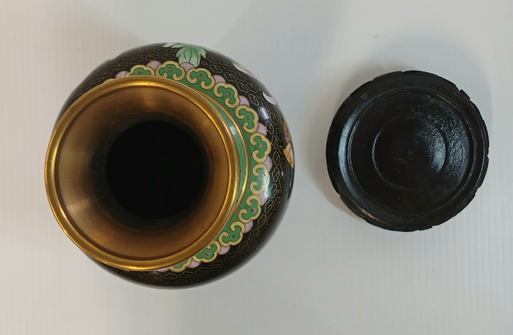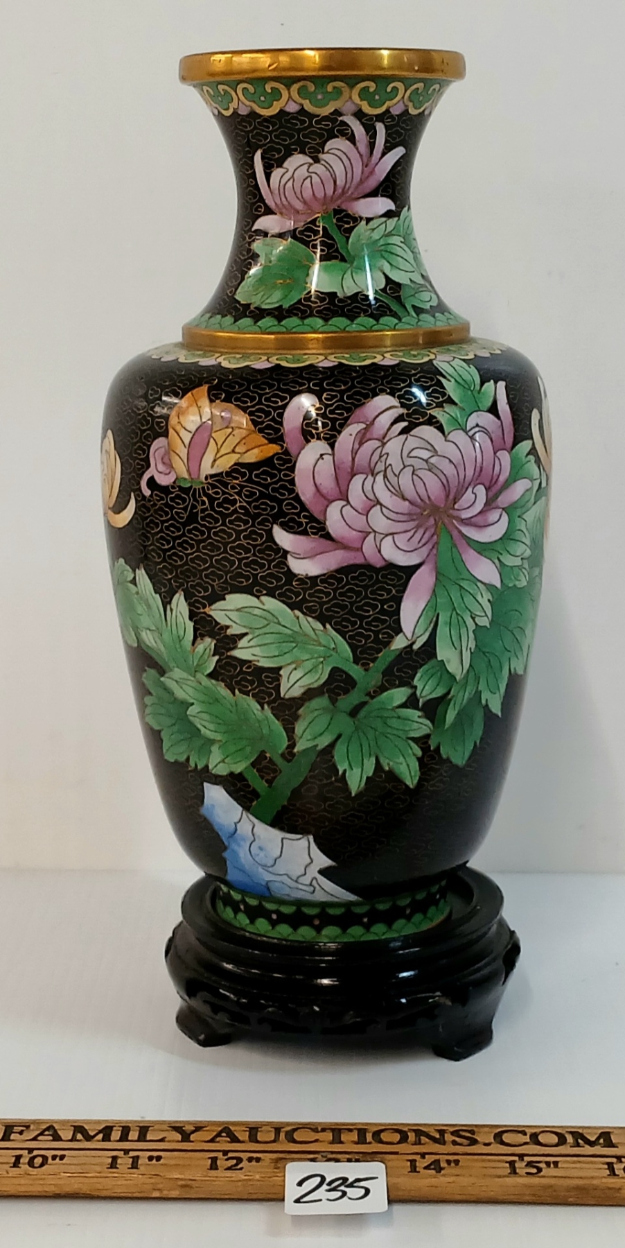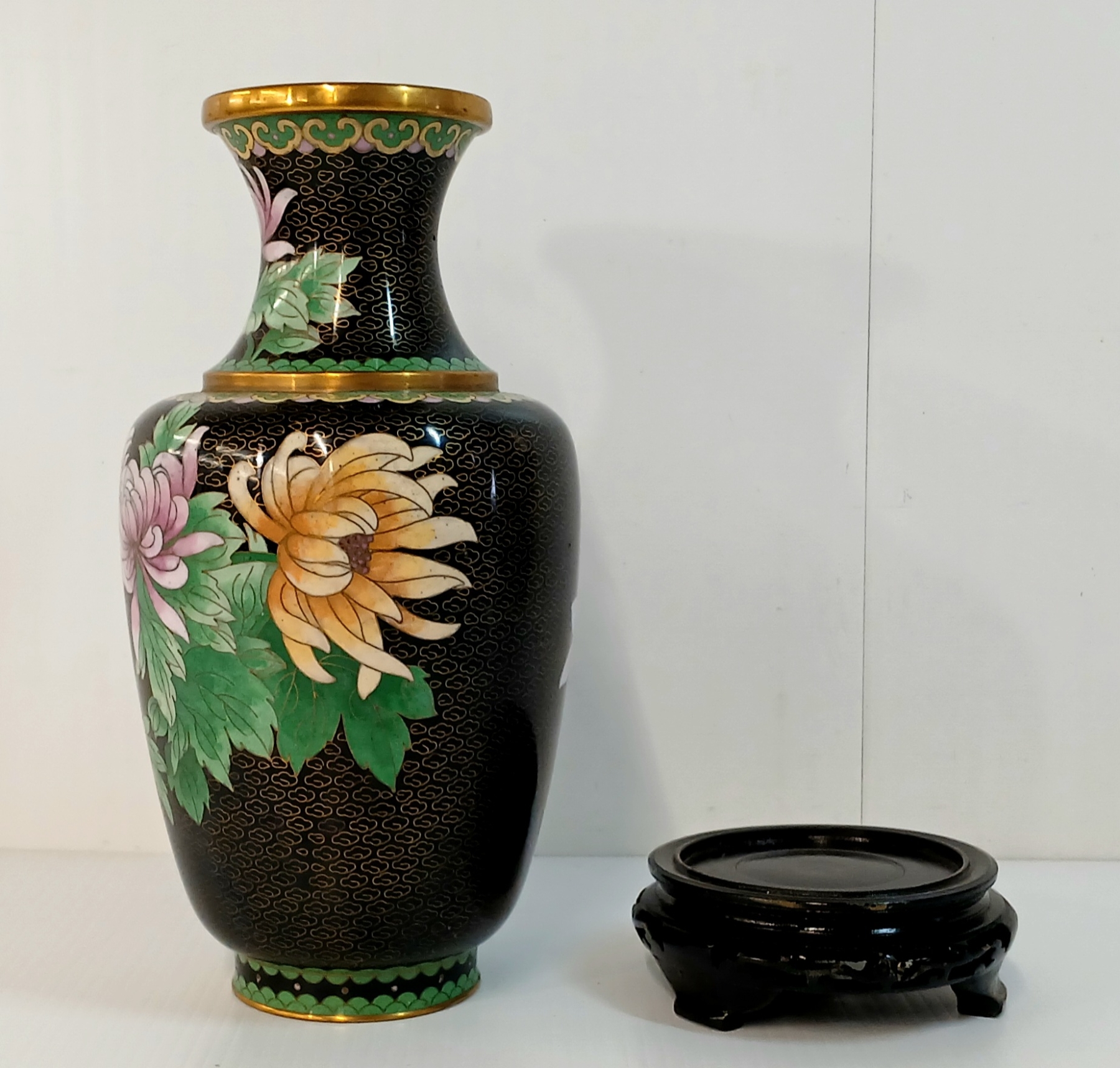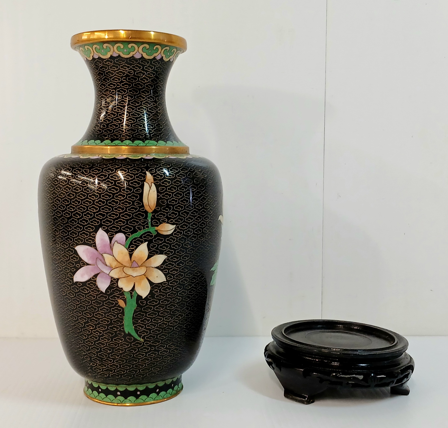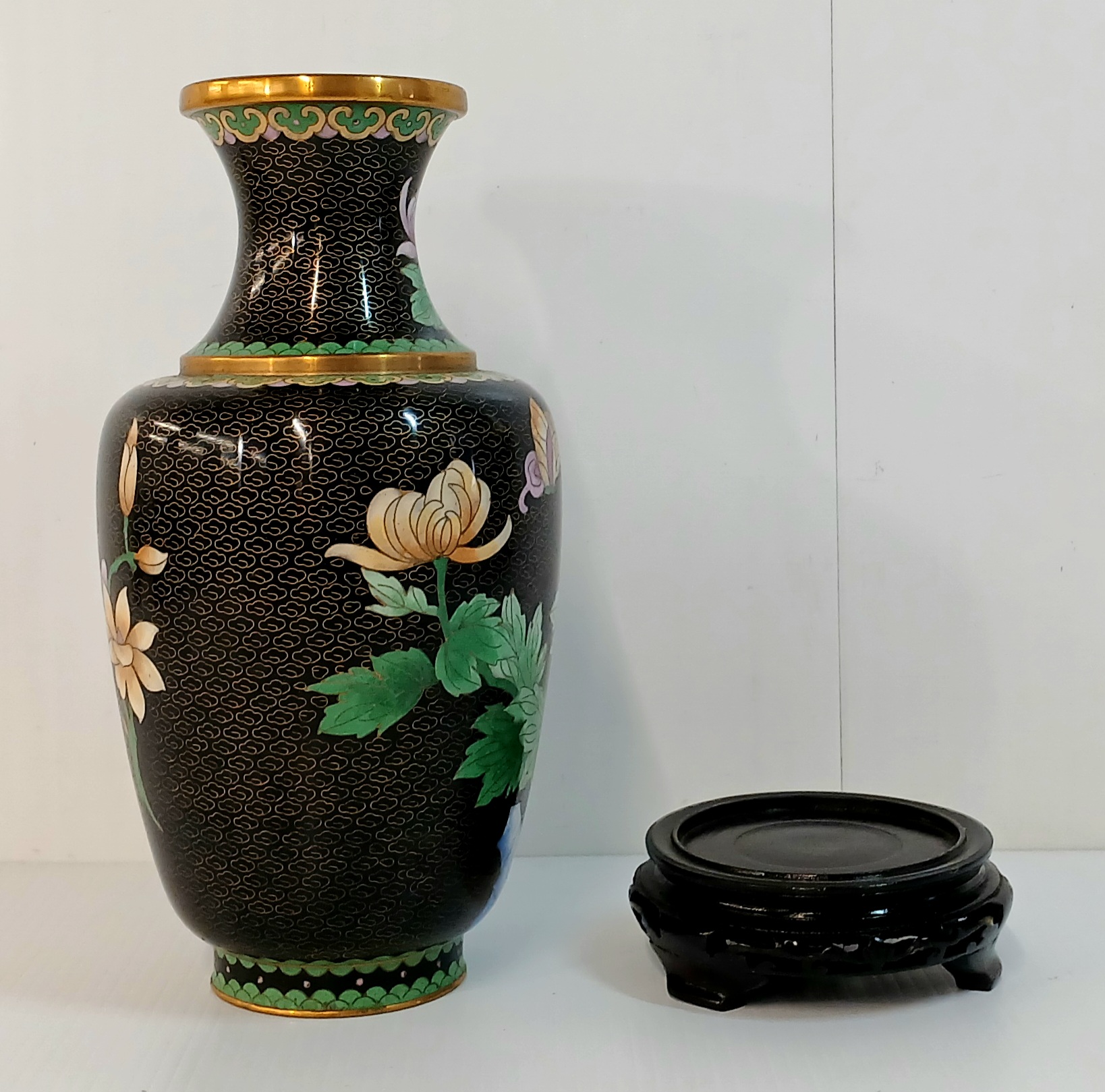 Lot 235 CHINESE CLOISONNE ENAMEL VASE W/ STAND - CIRCA 1960s - 1980s
