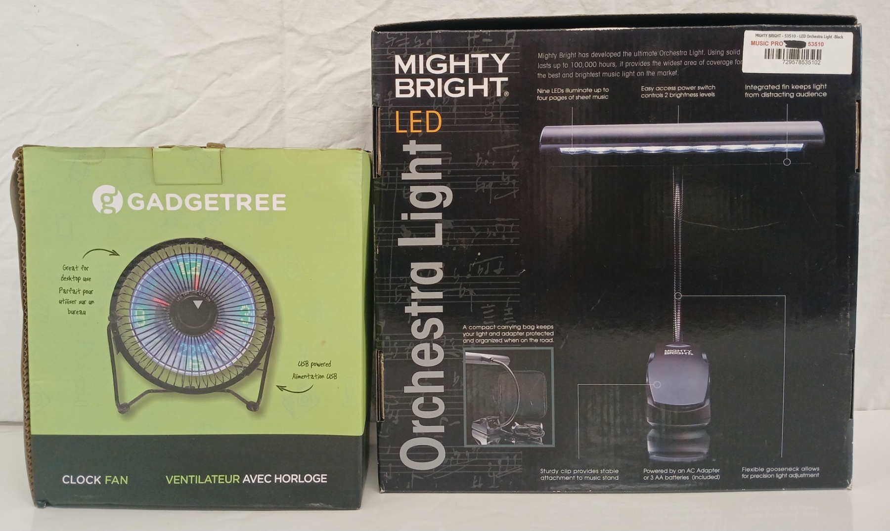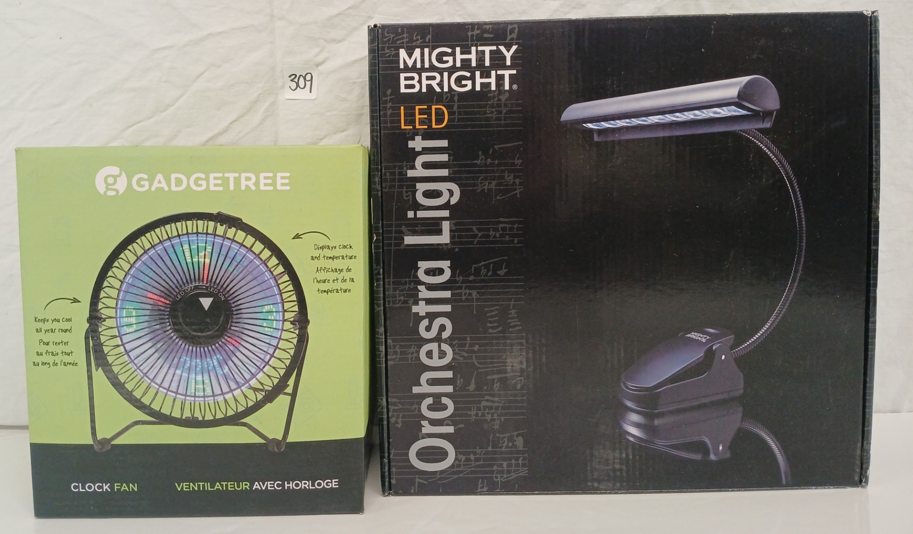 Lot 309 LOT OF 2 - MIGHTY BRIGHT LED ORCHESTRA LIGHT & GADGETREE CLOCK FAN