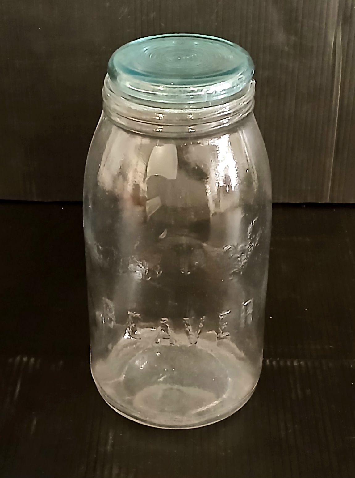 Lot 314 BEAVER EMBOSSED QT CANNING JAR W/ LID