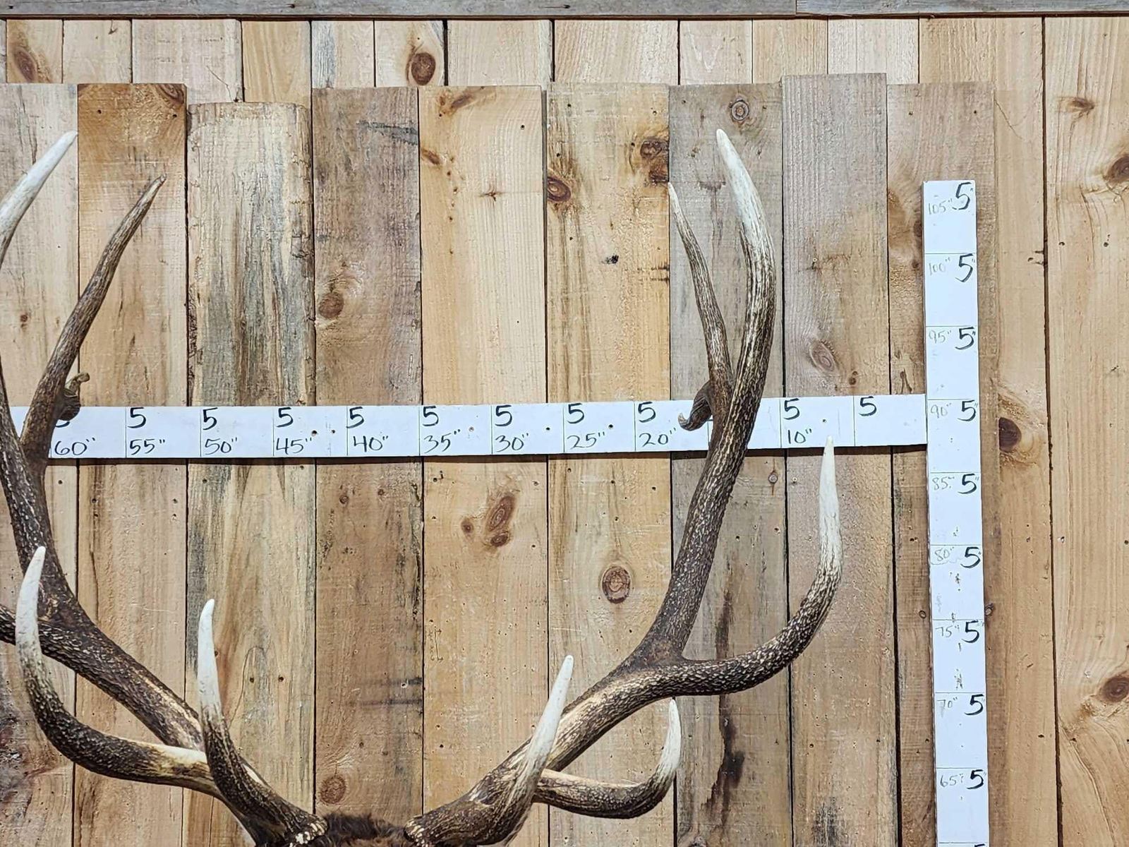 92.1 PRETTY mount big detachable antlers great natural color SCI Gold award 367 3/8" on rustic barn wood habitat base mount comes apart easily for easy transport