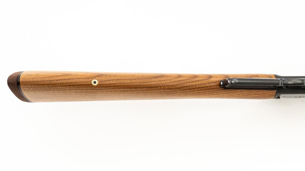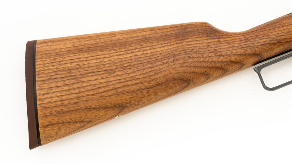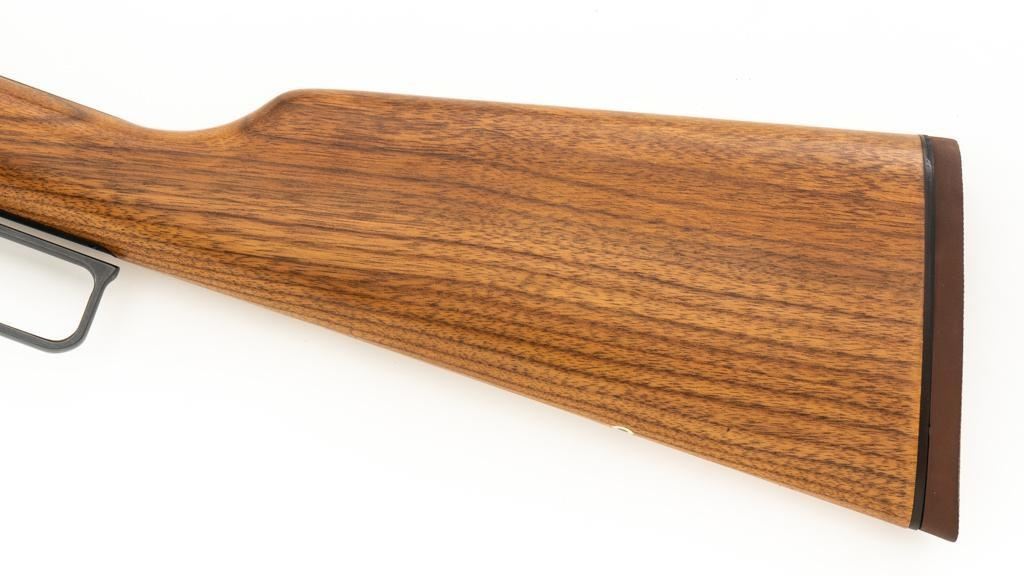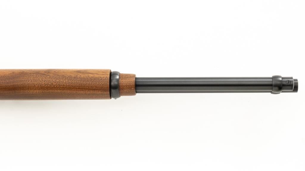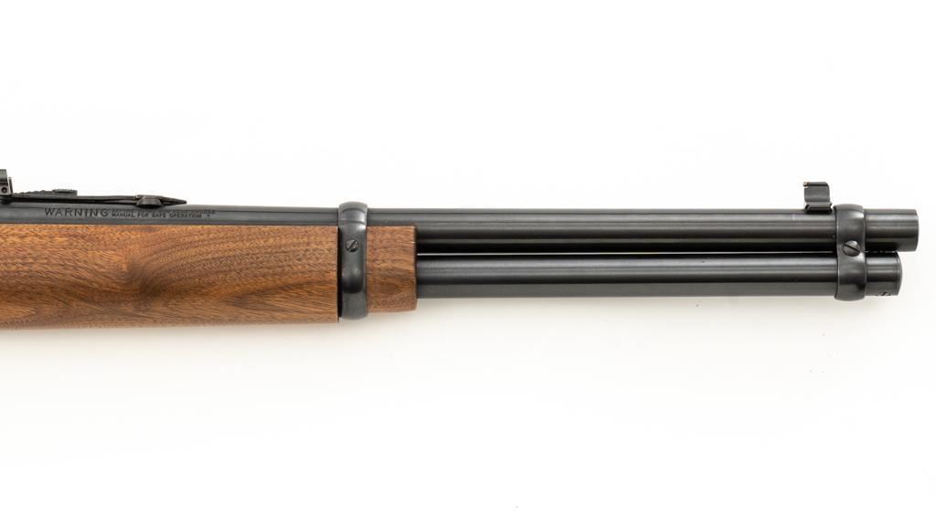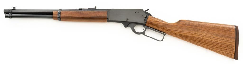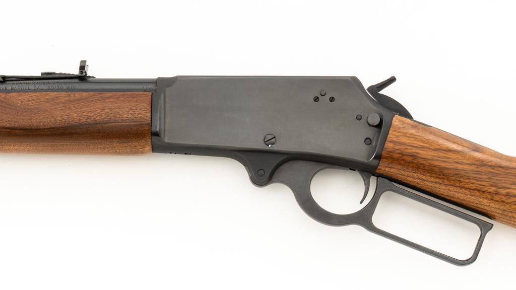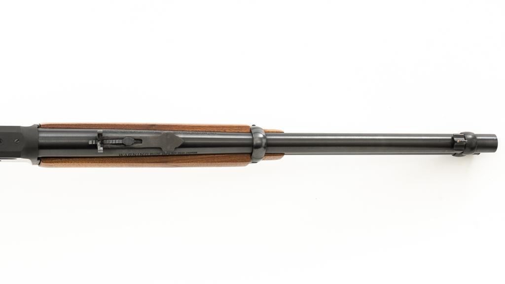 Scarce Marlin Model 336LTS Lever Action Carbine, #LTS00378, .30-30 Win. cal., 16.25'' ''JM'' marked round barrel, blue finish, straight grip walnut stock and forend, solid brown rubber Marlin buttplate, brass beaded blade front sight, semi-buckhorn rear sight with elevator, and cross-bolt safety. Top of the receiver is factory drilled and tapped for a scope mount. Considered scarce as only 2,671 were manufactured from 1988-1989. Condition is excellent, retaining approx. 98% factory blue, with a few light scratches and handling marks to the sides of the receiver. Factory lettering is crisp. Wood displays only a few light handling marks. Action is crisp and operates smoothly. Bore rates excellent and is bright with strong rifling. Est.: $500-$700. (Modern/PPT)