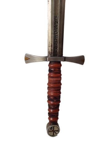 Straight from the set of Lionsgate's supernatural thriller The Last Witch Hunter comes Kaulder's (Vin Diesel) hero screen used, stunt sword! This was featured heavily in the movie and the sword is production constucted with a resin blade and wood handle sword. There is symbolic writng inscribed and a special symbol on the handle. This sword is slightly shorter than the hero sword and was used on screen in many sequences in the film.(34x8)