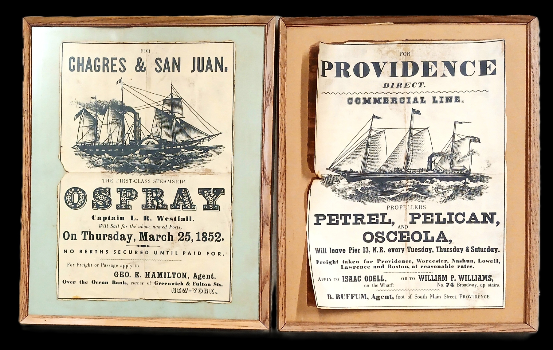 Lot 408 LOT OF 2 - FRAMED SHIP CHARTER ADVERTISEMENTS - 1852
