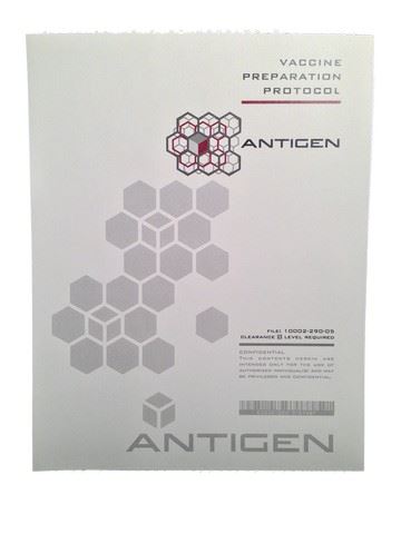 Screen used page from the Antigen Laboratory 'Vaccine Preparation Protocol' file, printed on grey card stock paper (11x8.5).