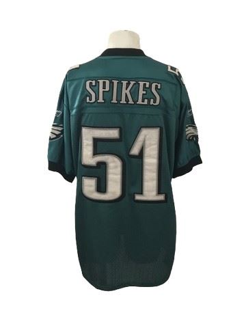 Takeo Spikes #51 Philadelphia Eagles signed Reebok football jersey size 52/XL and XL Philadelphia Eagles T-Shirt. Takeo Spikes: (December 17, 1976): American former professional football player who was a linebacker in the NFL. He played college football for Auburn Tigers. He was selected by the Cincinnati Bengals with the 13th overall pick in the 1998 NFL draft. He also played for the Buffalo Bills, Philadelphia Eagles, San Francisco 49ers, and San Diego Chargers.