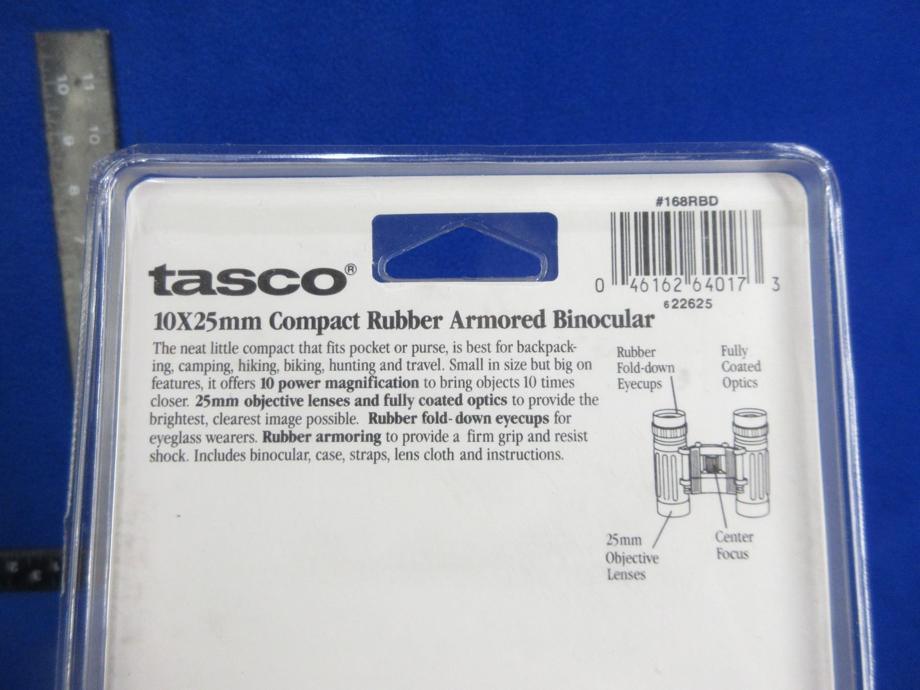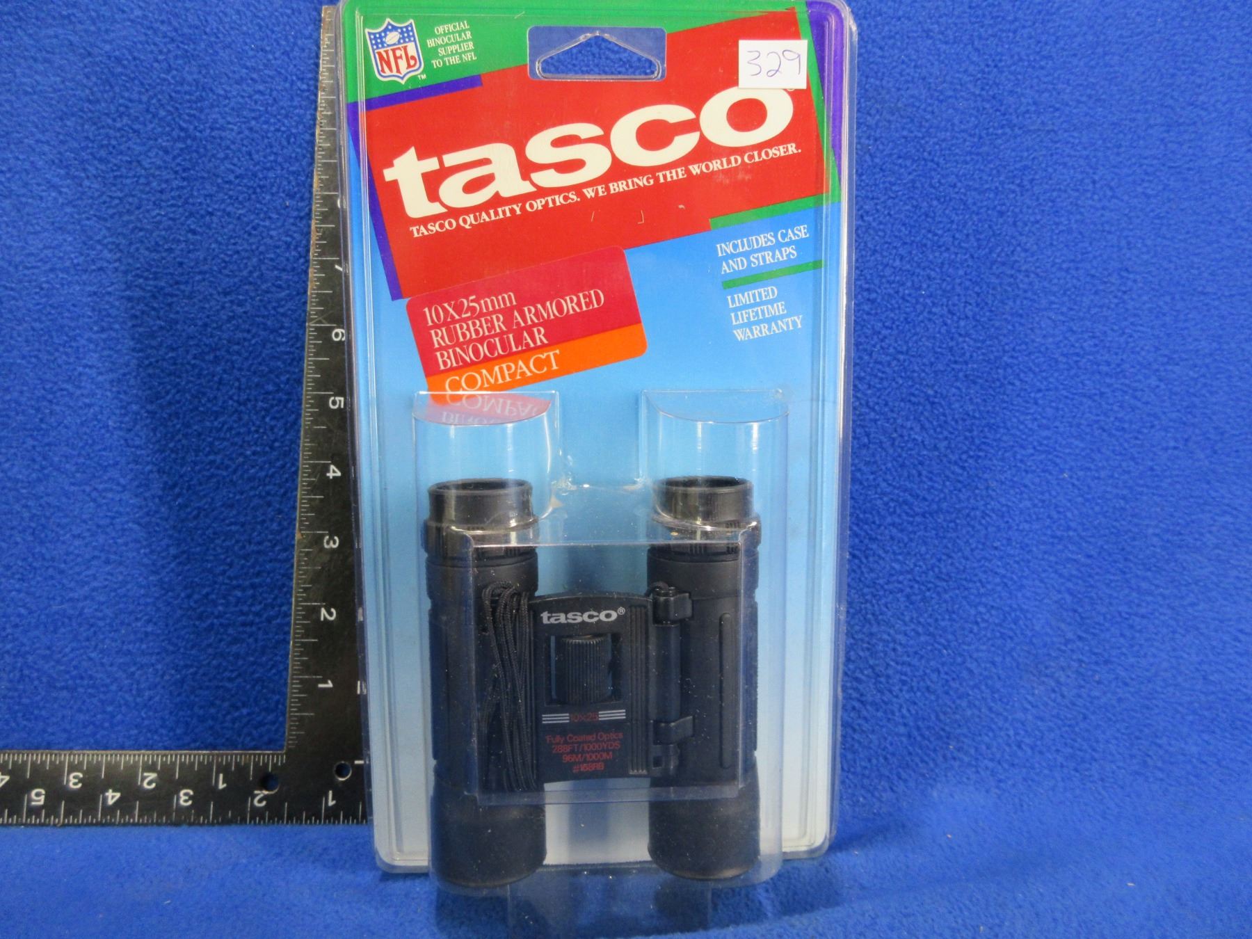 Lot 329 Tasco 10x25mm Rubber Armored Compact Binoculars - New Old Stock