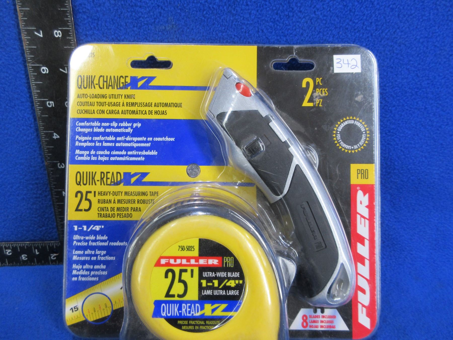 Lot 342 NEW - Fuller Pro Quik-Change Utility Knife & Quik-Read Measuring Tape