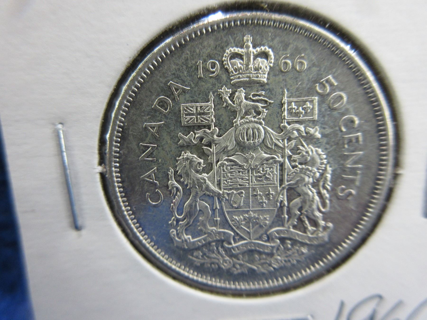 Lot 1127 3 Canadian 50 Cent Coins - 1966, 1968, 1969 - 1966 is .800 Silver