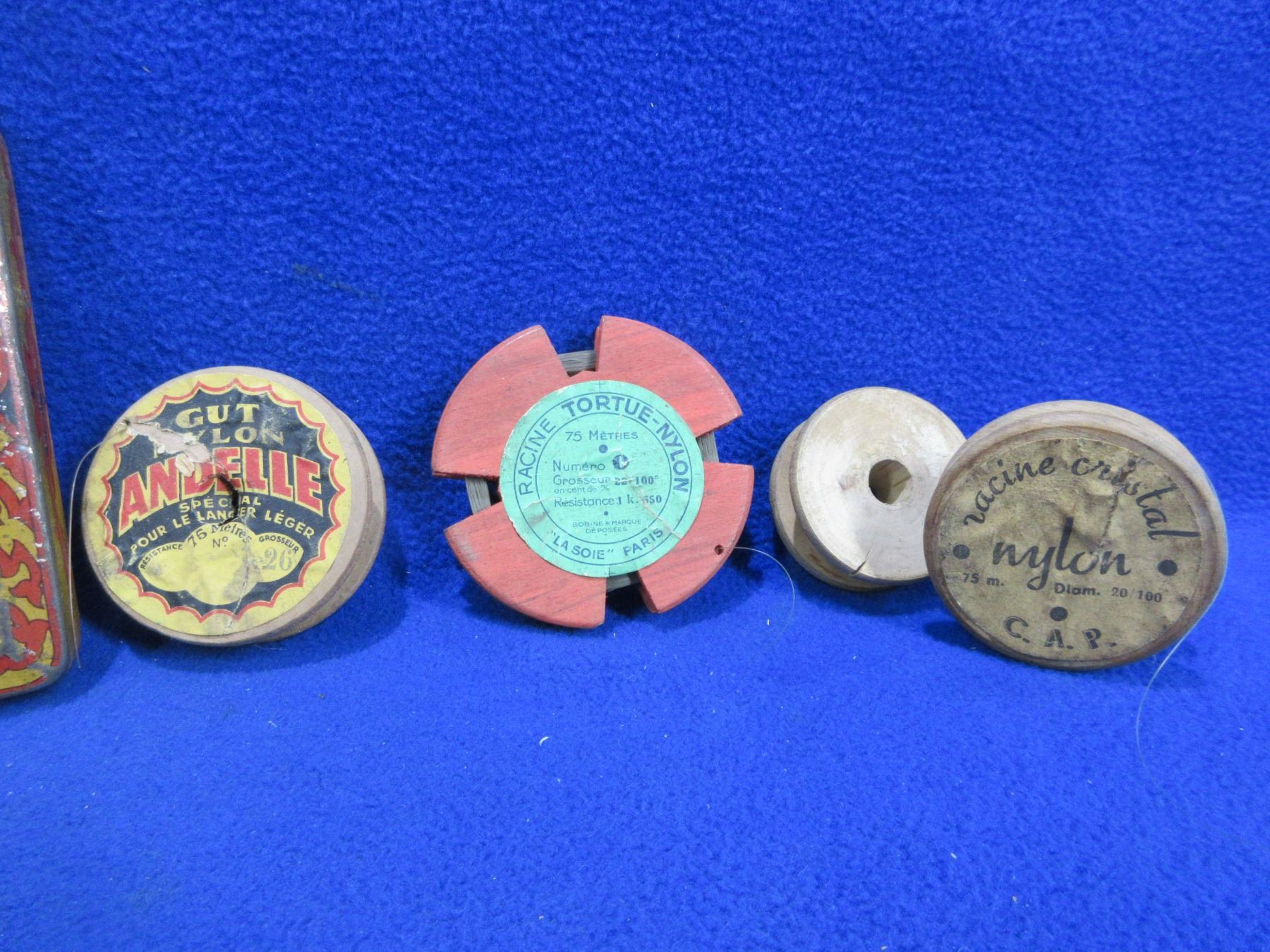 Lot 1162 4 Vintage French Wood Fishing Line Spools and French Fishing Lures
