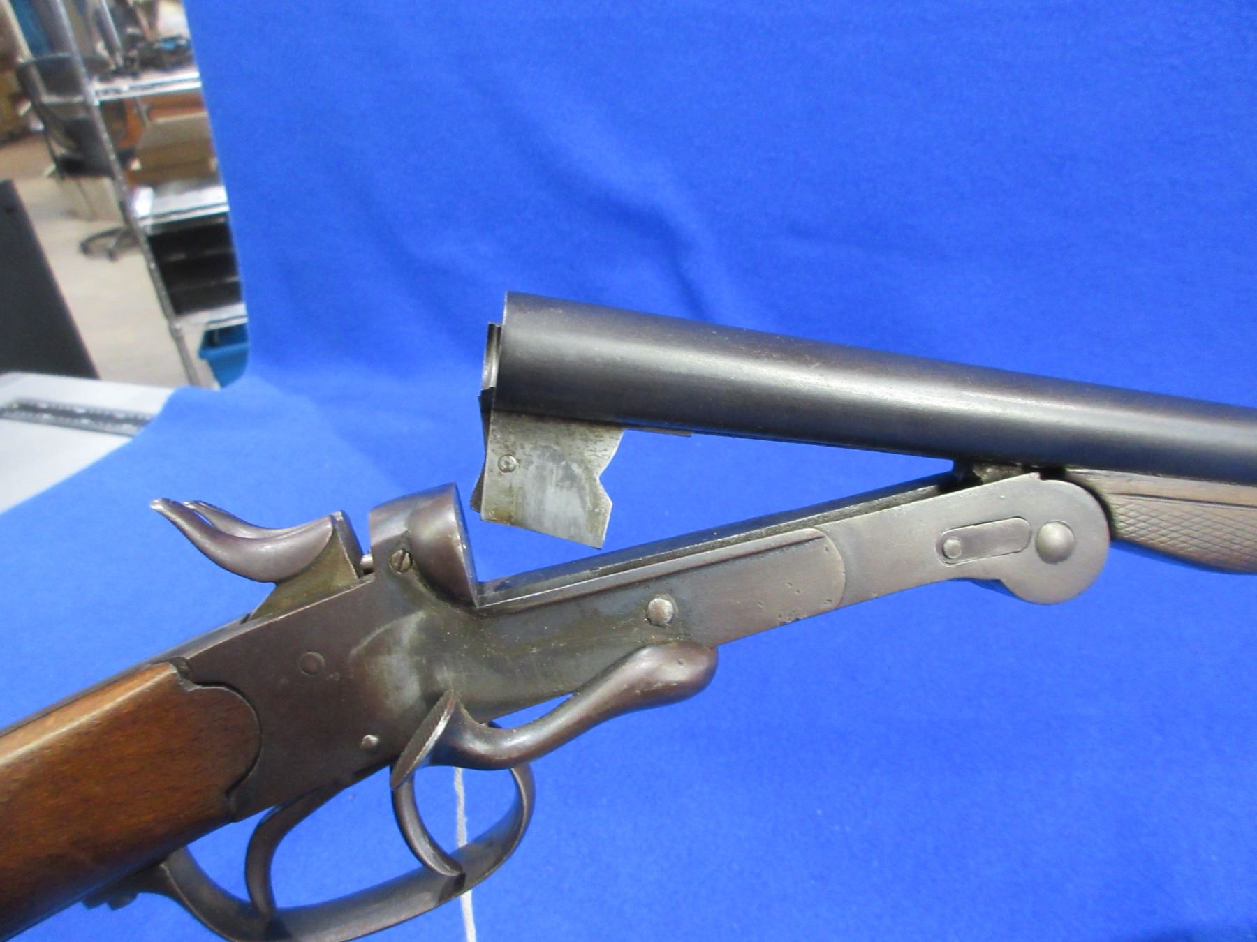 Non-Restricted - Belgian SXS in .410 Ga. 2 1/2" - This is a folding SXS hammer shotgun, action is loose and is in non working order as action will not stay closed. Barrels are 29 7/8", bores are fair with light pitting, bluing has some rust and pitting, has bead front sight, stock is good with minor usage marks, forearm is good with minor usage marks, length of pull is 14 1/2". Ser # 1233