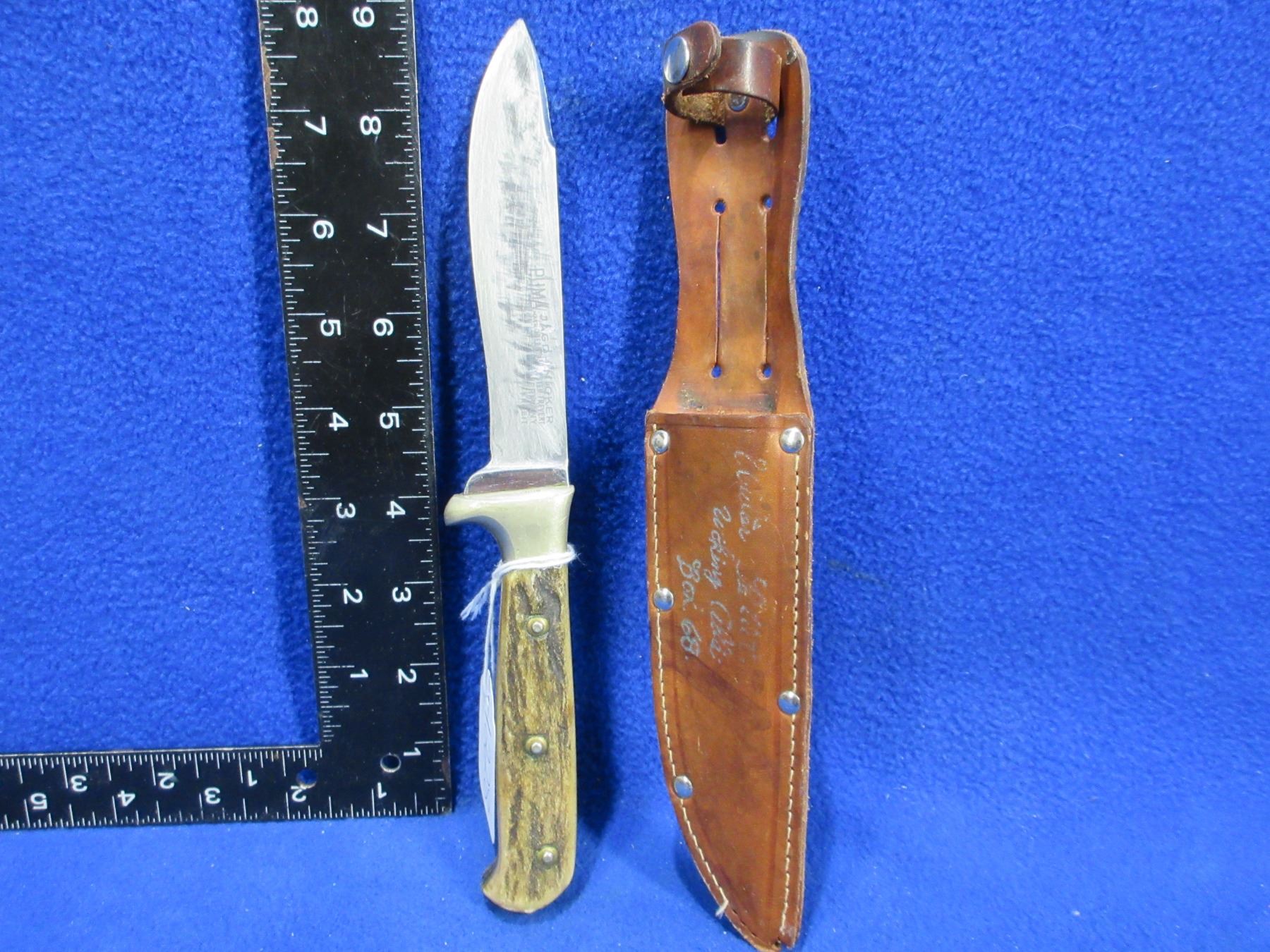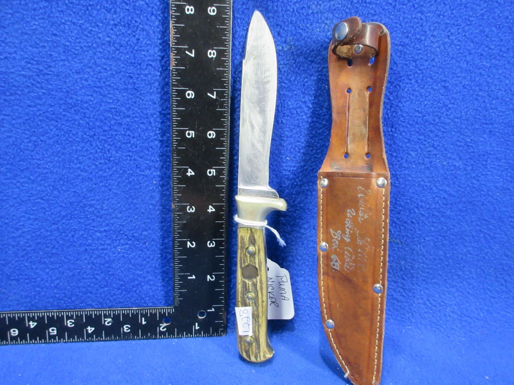Puma Jagdnicker Fixed Blade Knife with Stag Handle - 4 1/2" Blade, 9" Total Length - Comes with incorrect leather sheath