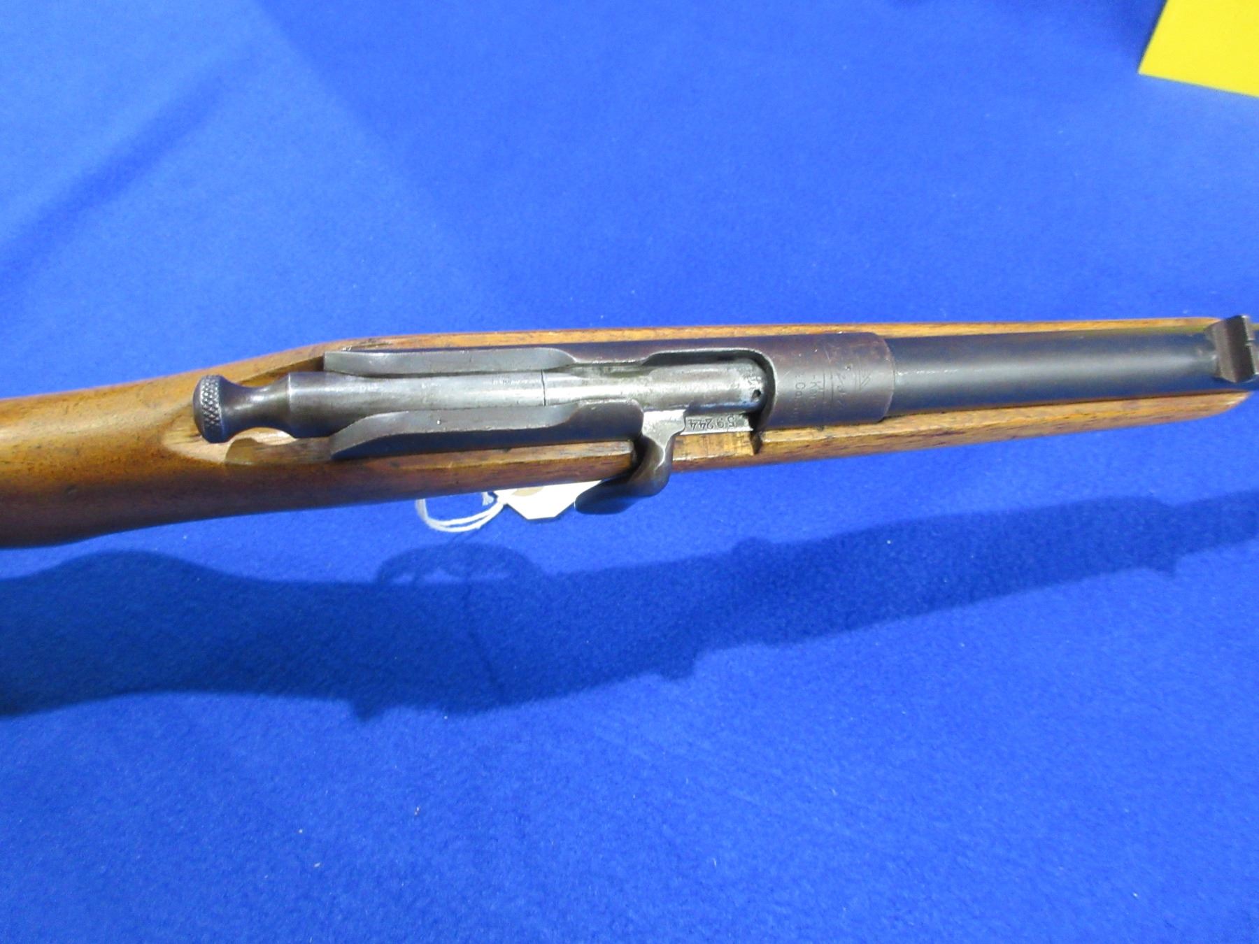 Non-Restricted - Simson & Co. Suhl Model P.K. in 22 Cal. - This is a single shot bolt action rifle, action appears to be in working order. Barrel is 23 1/2", rifling is poor to fair, bluing is fair to good, has both sights, stock is good with usage marks, length of pull is 13 1/4", metal butt plate good. Ser # 59244