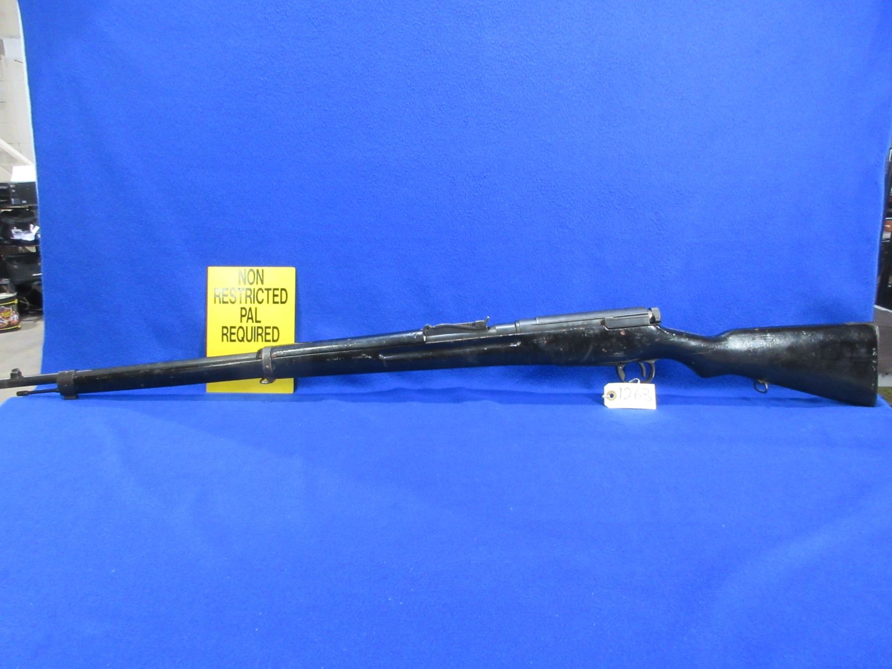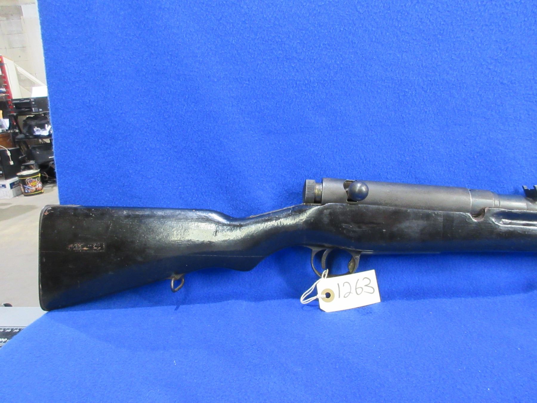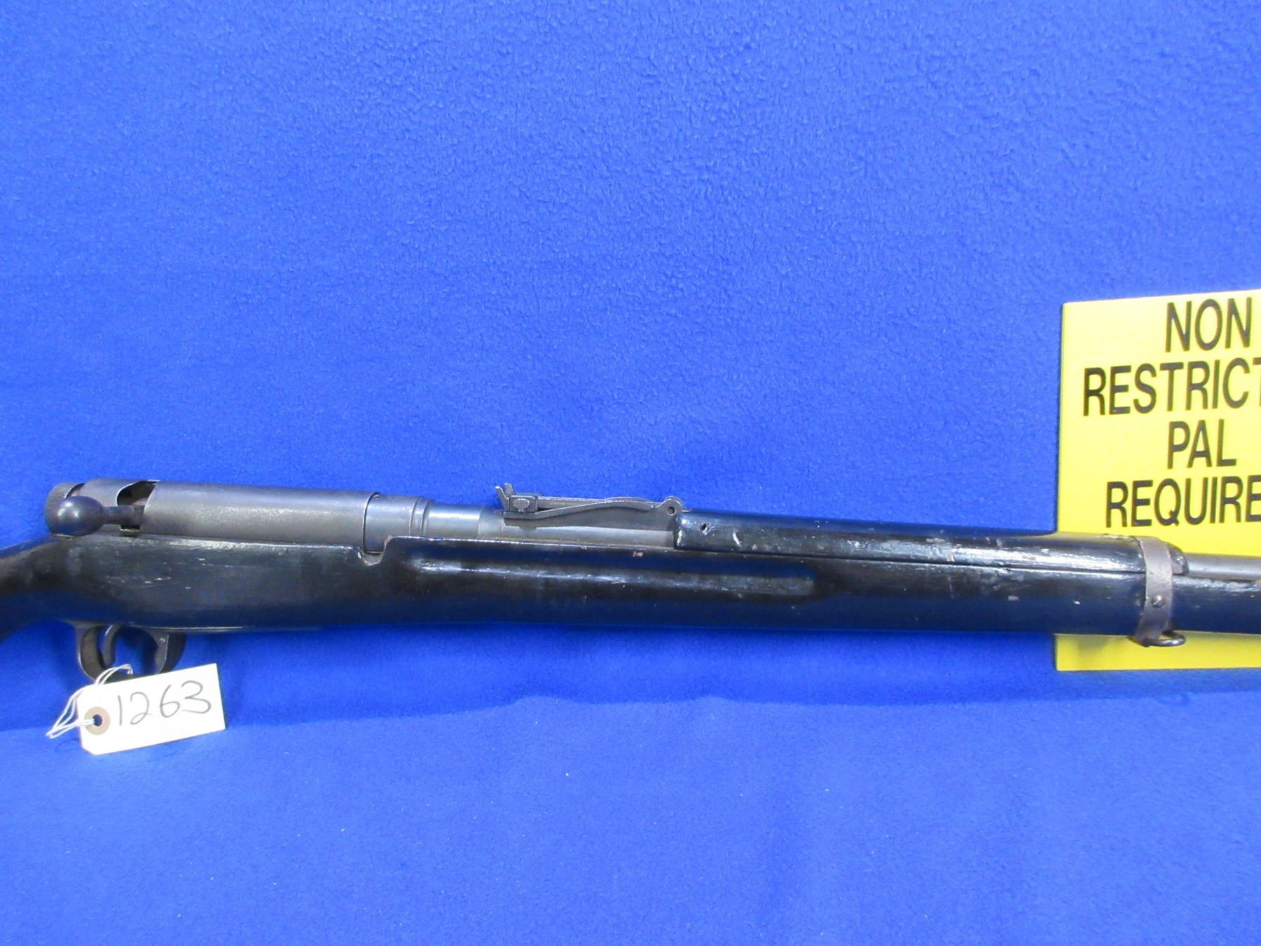 Non-Restricted - Siamese Arisaka in 8x52R - This is a bolt action rifle with floorplate magazine, action appears to be in good working order. Barrel is 30", rifling is good, bluing is fair to good with some light pitting, has both sights, stock has been painted black, length of pull is 12 1/2", metal butt plate good, comes with swivels. Ser # None