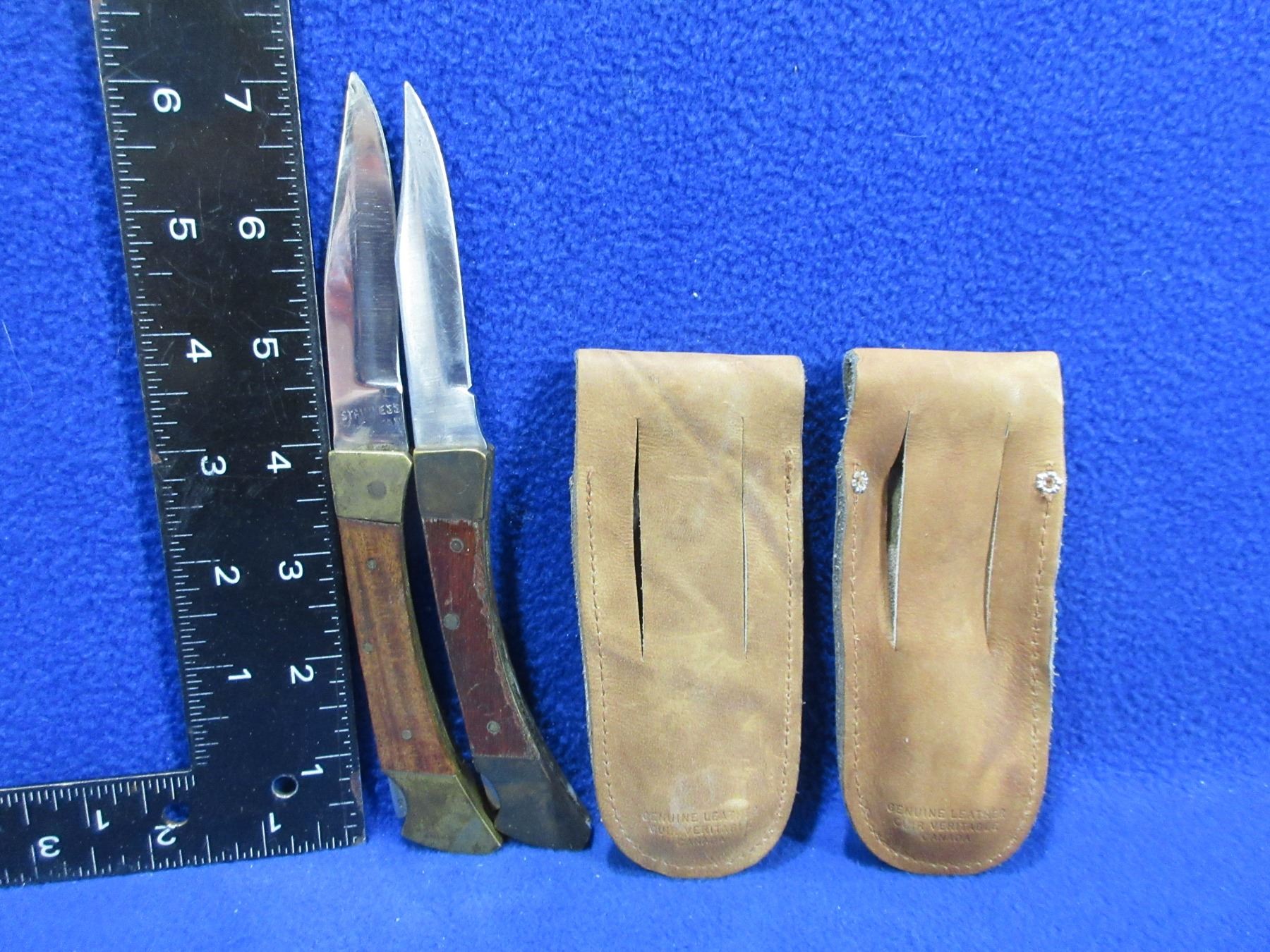 2 Folding Lock Blade Knives with Leather Sheaths - 3" Blades