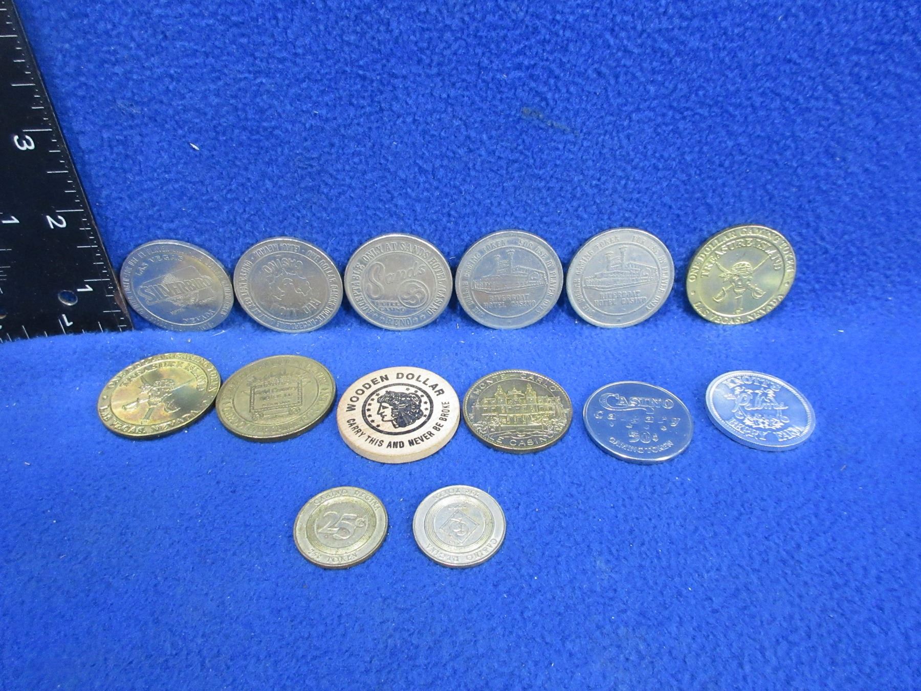 Lot 1346 Lot of 14 Assorted Casino Tokens - Las Vegas, Reno, Monte Carlo, Regina, Etc.