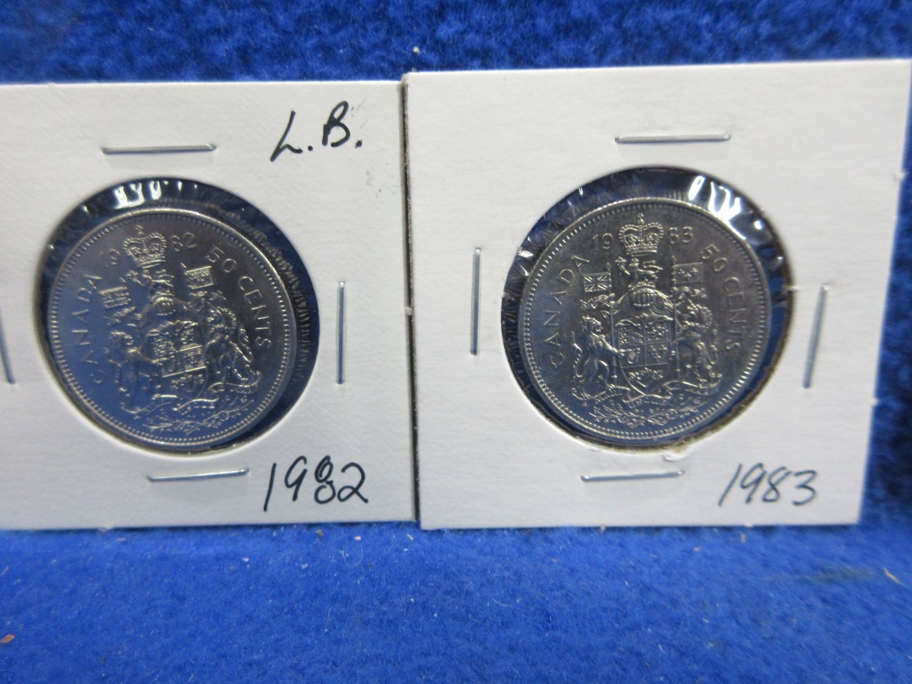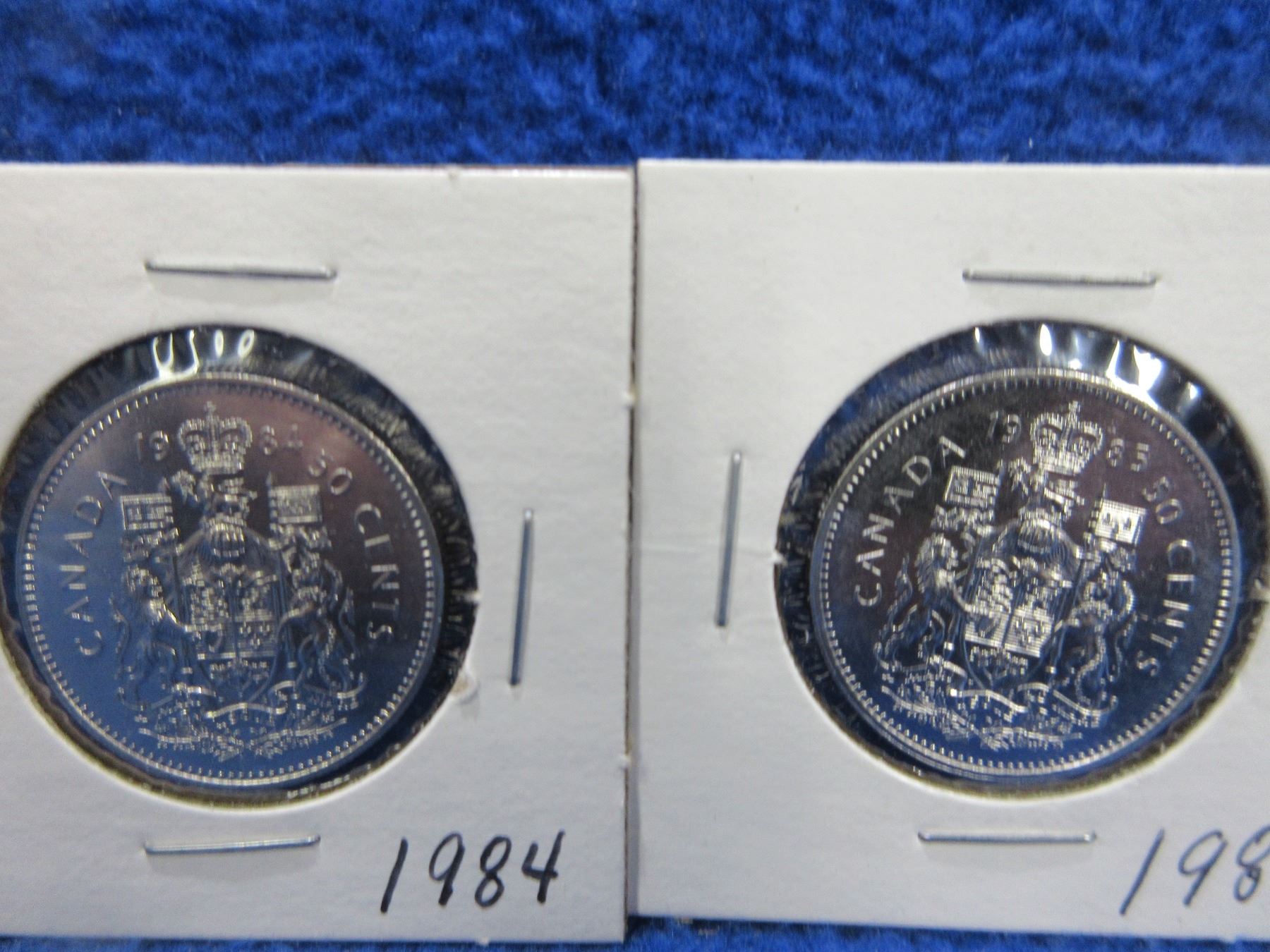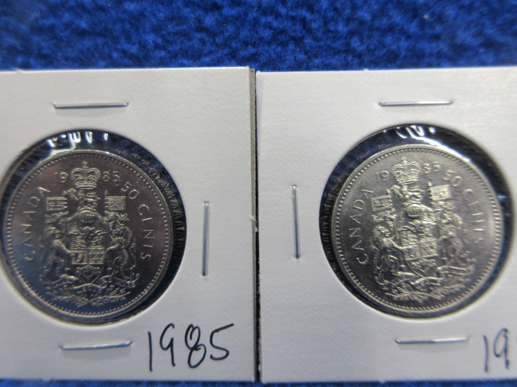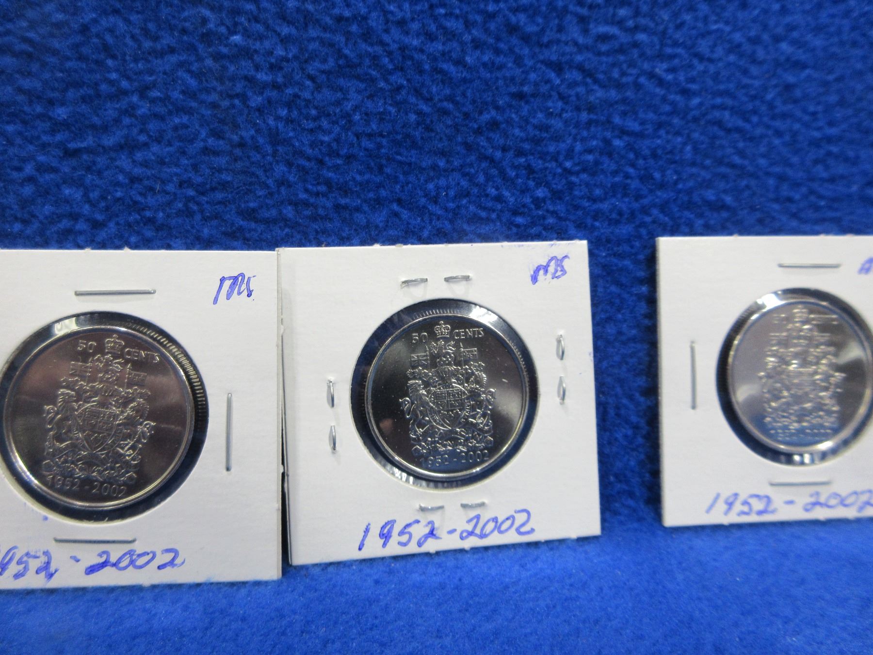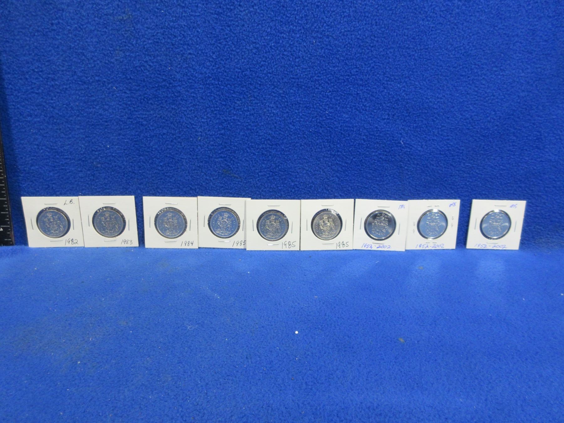 9 Canadian 50 Cent Coins - 2002 x 3, 1985 x 3, 1982, 1983 and 1984