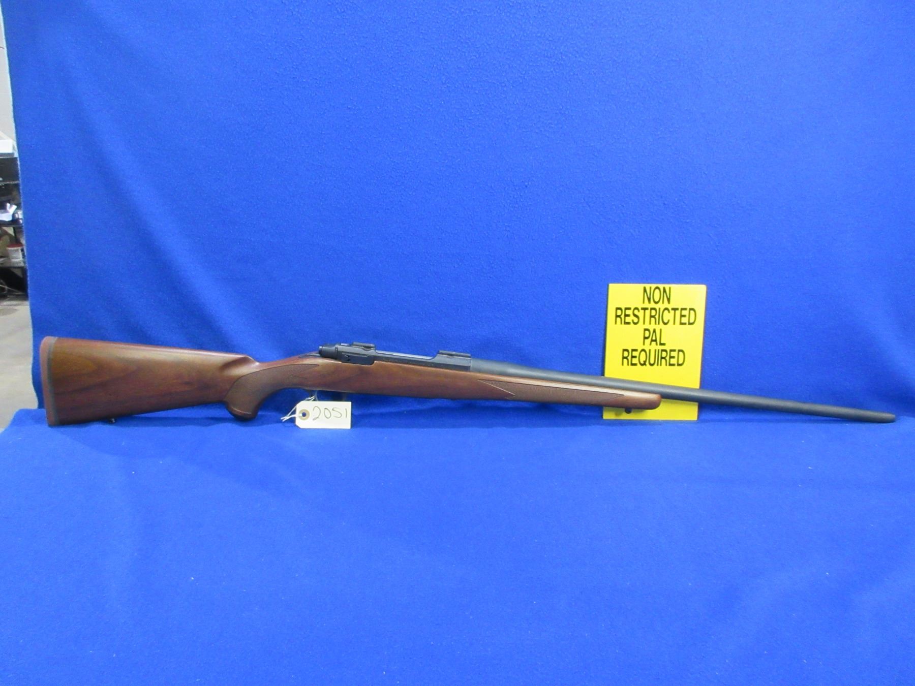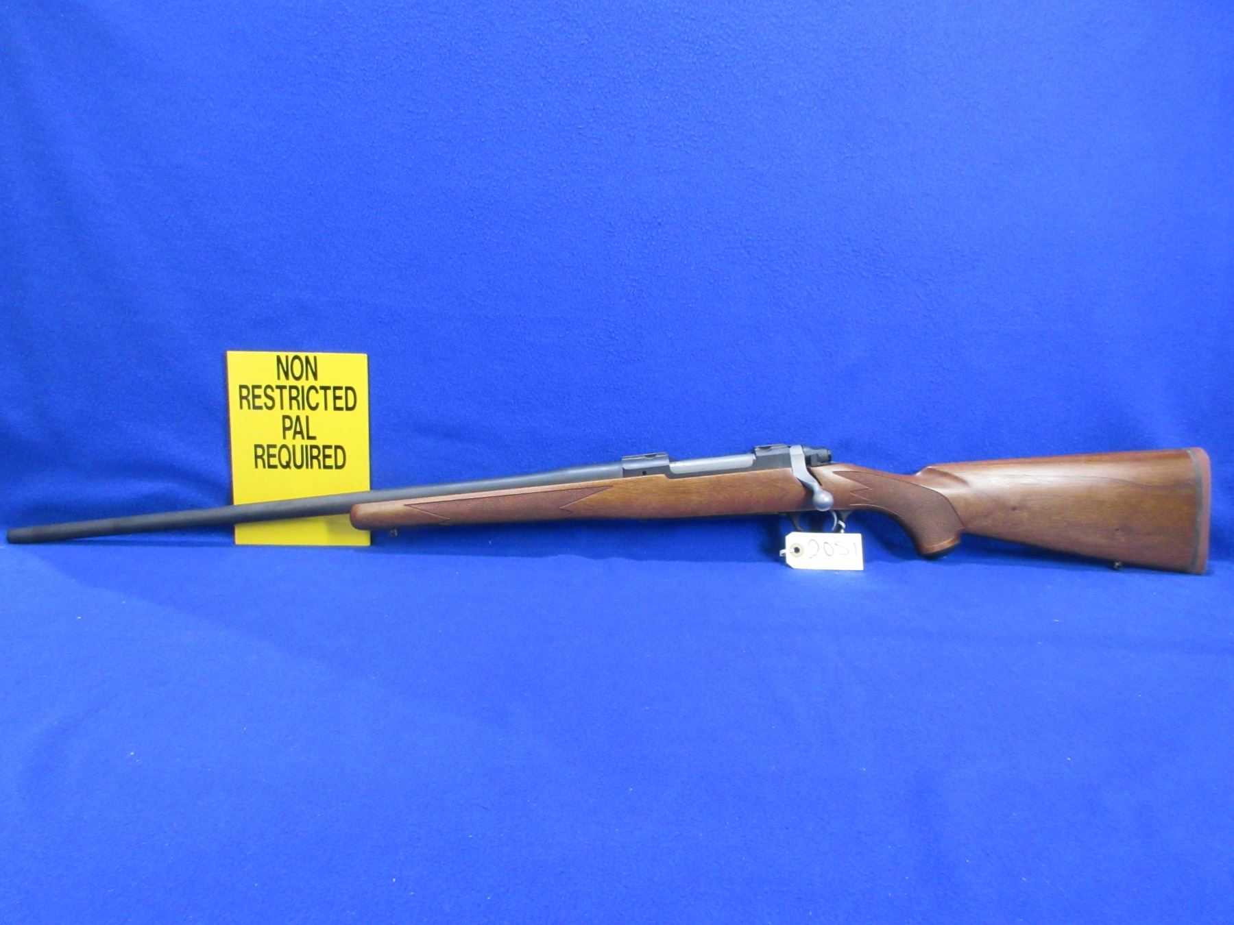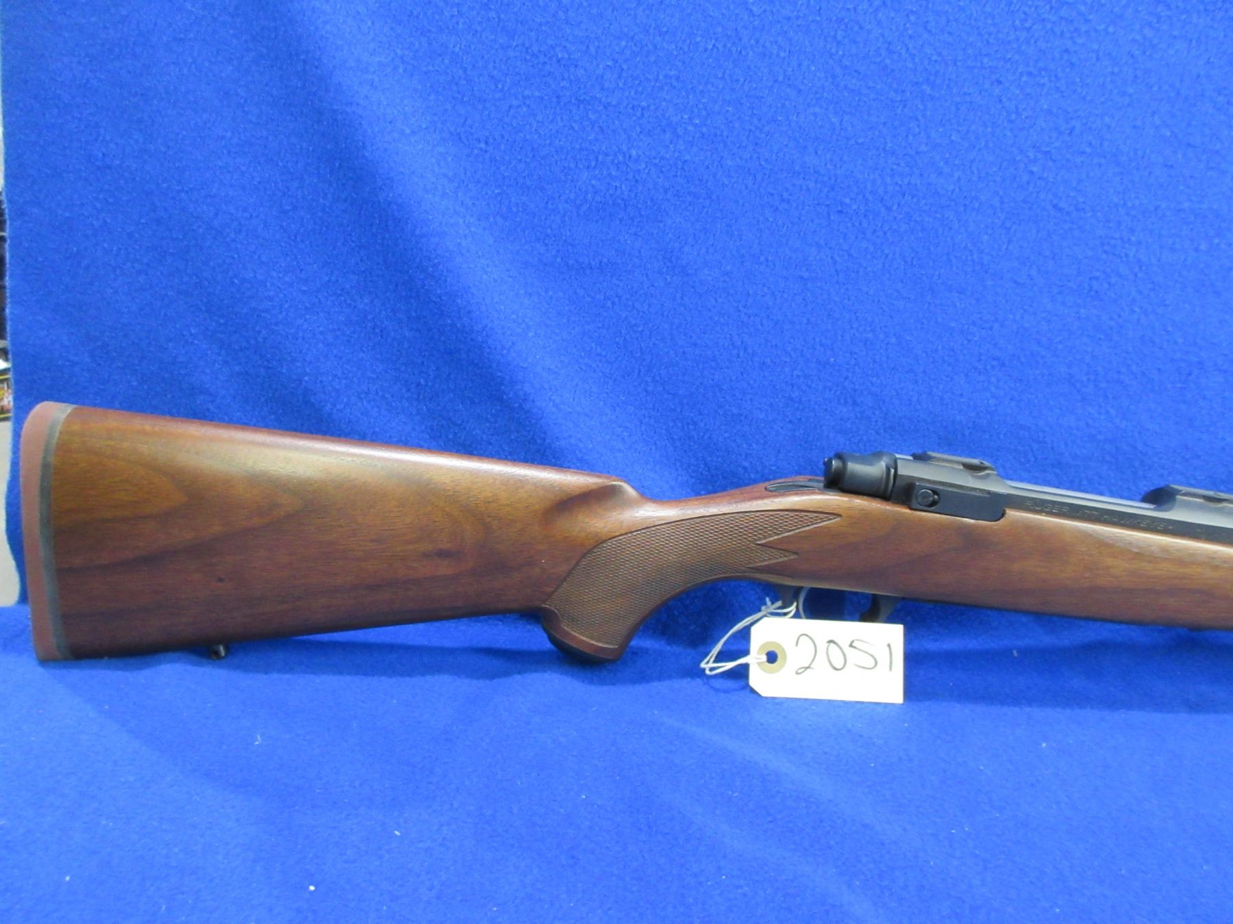 NEW - Non-Restricted - Ruger M77 Hawkeye Left Hand in 300 Win Mag - This is a NEW, never fired bolt action rifle with floorplate magazine. Barrel is 24", has no sights but has integral base, bluing has a very minor scuff mark on top of the barrel and integral base has marks where a scope was mounted, stock has 2 very minor handling marks near the butt, length of pull is 13 3/4", rubber recoil pad, comes with swivel studs. Ser # 710-71509