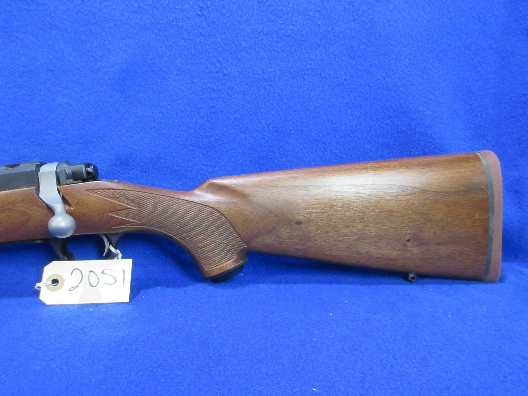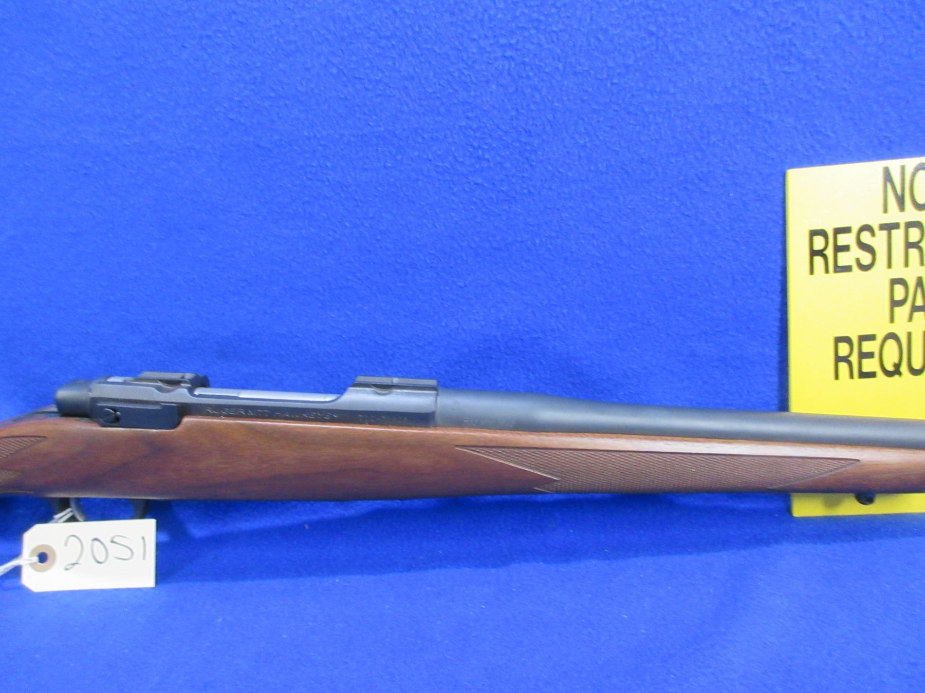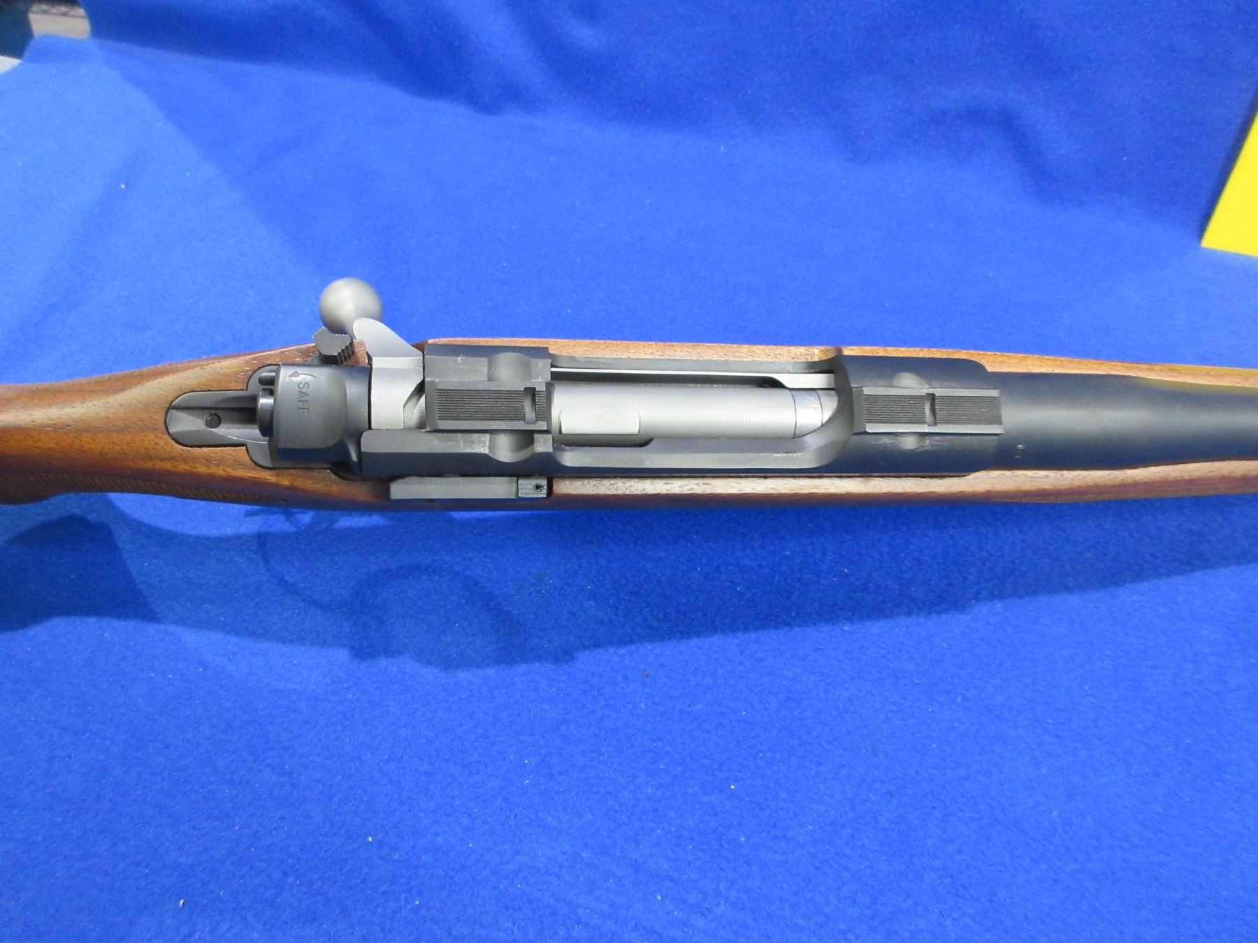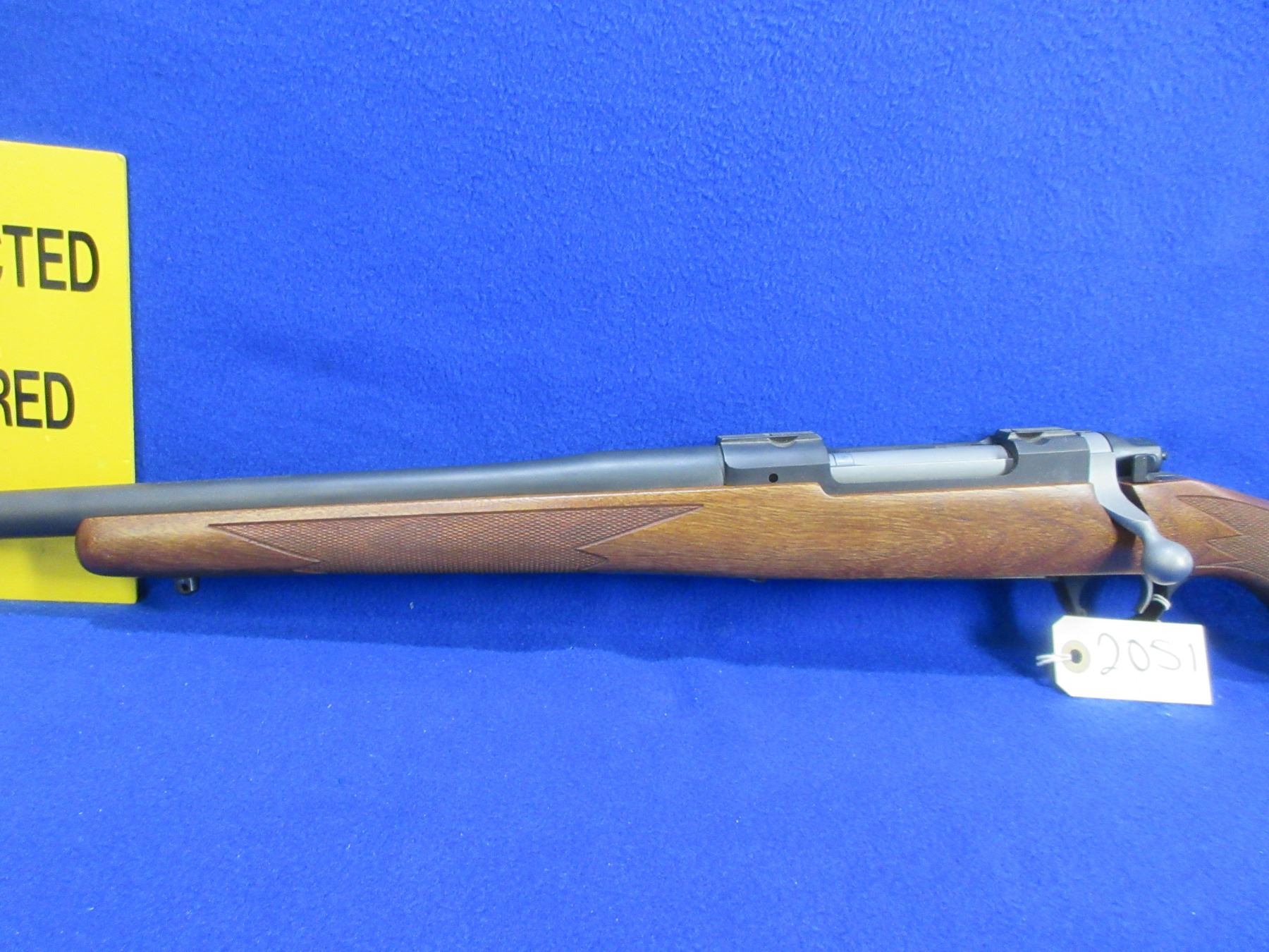 NEW - Non-Restricted - Ruger M77 Hawkeye Left Hand in 300 Win Mag - This is a NEW, never fired bolt action rifle with floorplate magazine. Barrel is 24", has no sights but has integral base, bluing has a very minor scuff mark on top of the barrel and integral base has marks where a scope was mounted, stock has 2 very minor handling marks near the butt, length of pull is 13 3/4", rubber recoil pad, comes with swivel studs. Ser # 710-71509