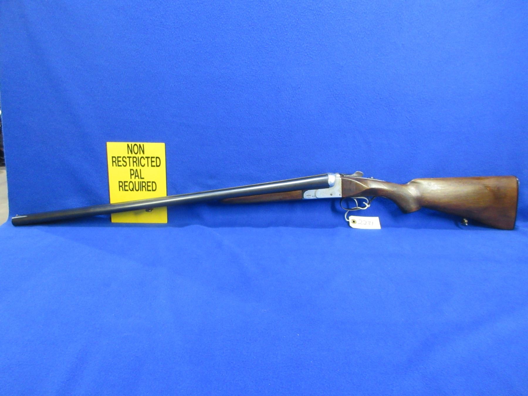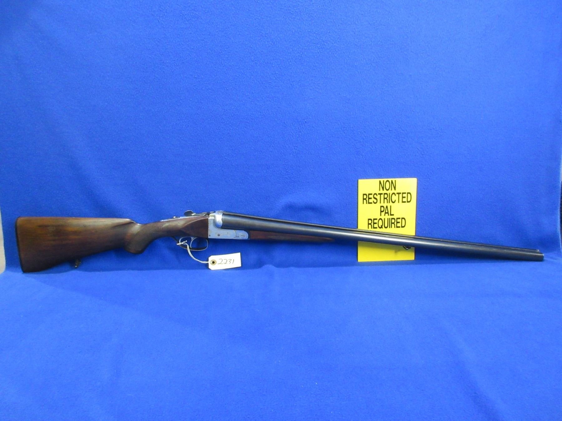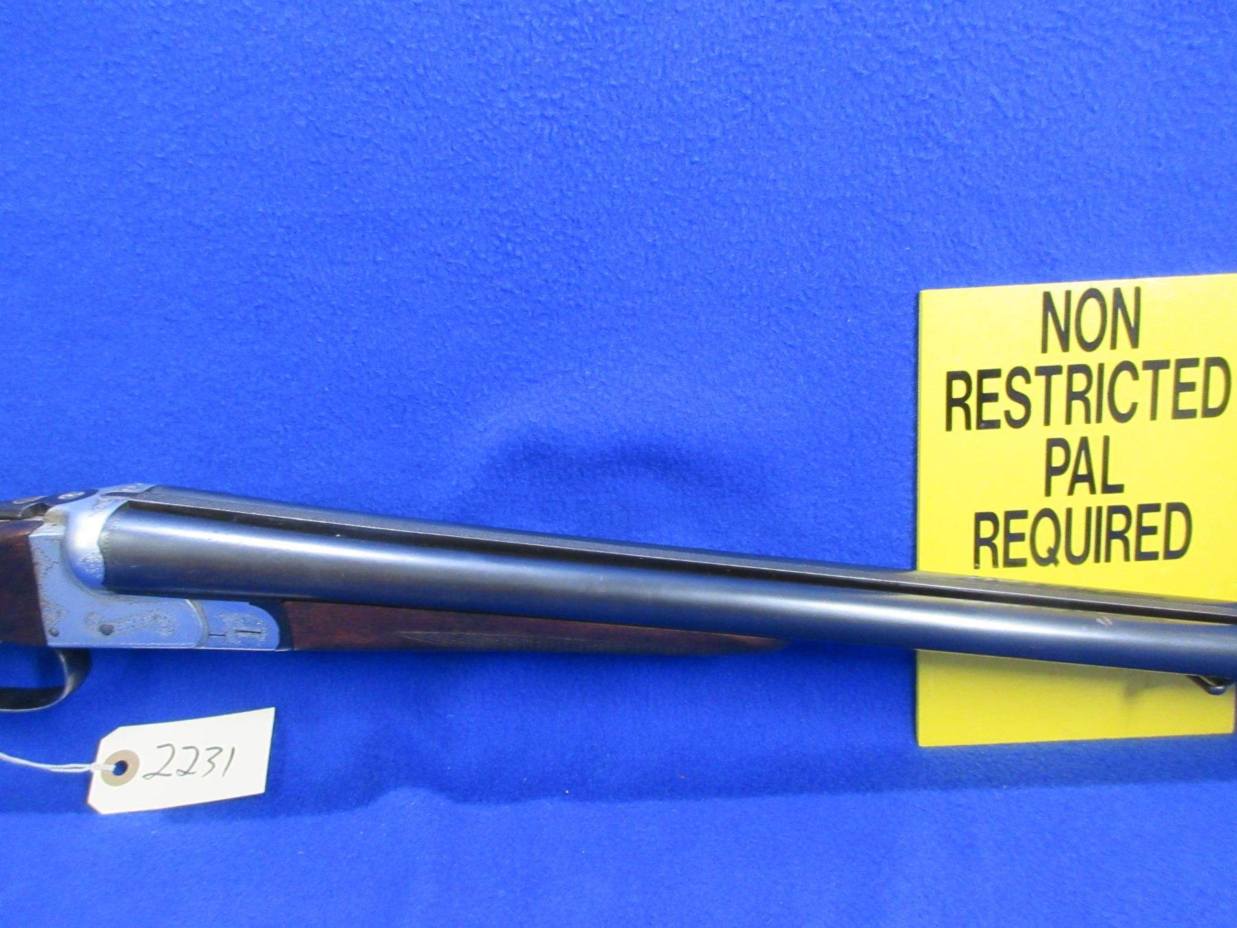Non-Restricted - Aya Model 4 in 12 Ga. 2 3/4" - This is a tip up SXS shotgun, action is tight and appears to be in good working order. Barrels are 28", bores are good but right barrel has a small dent, bluing is good, has bead front sight, stock is good but toe appears to be reshaped, forearm is good to very good, length of pull is 14 1/4", butt plate good, comes with swivels. Ser # 230200