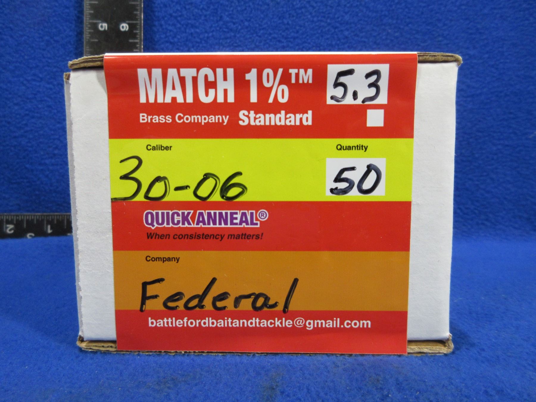 Brass Only - 30-06 Annealed , Cleaned, Unprimed Federal - Box of 50 - Battleford Bait & Tackle